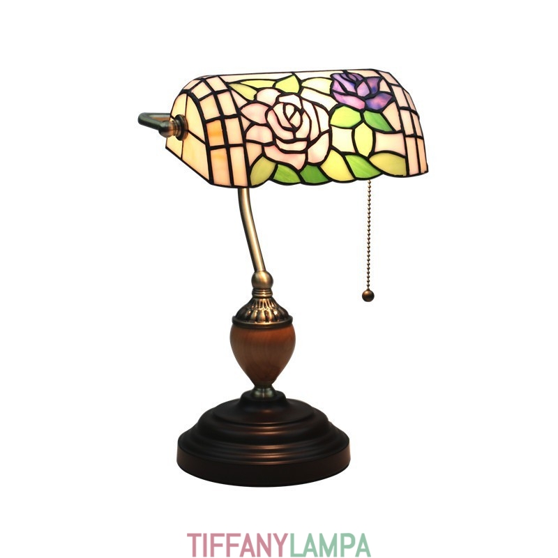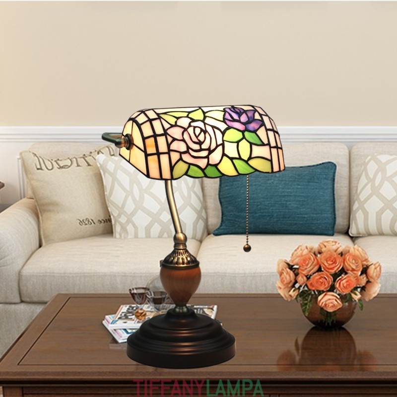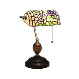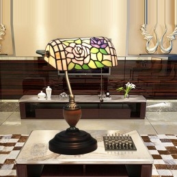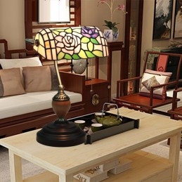 Eiropas vitrāžas rožu stila Tiffany galda lampa