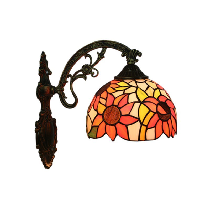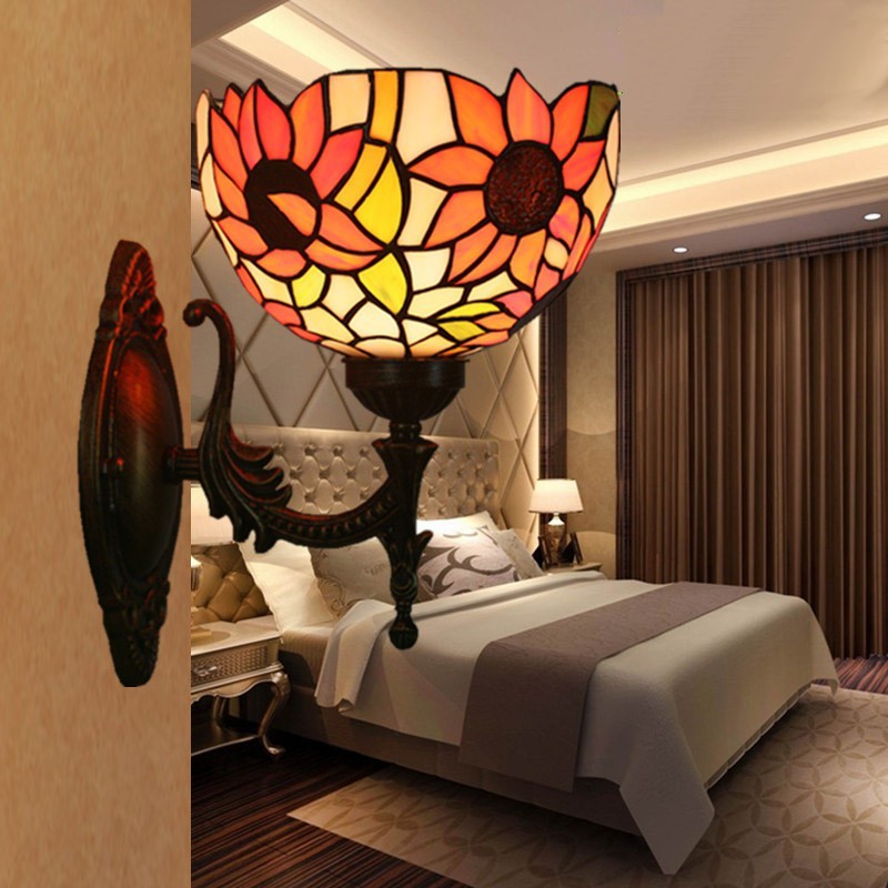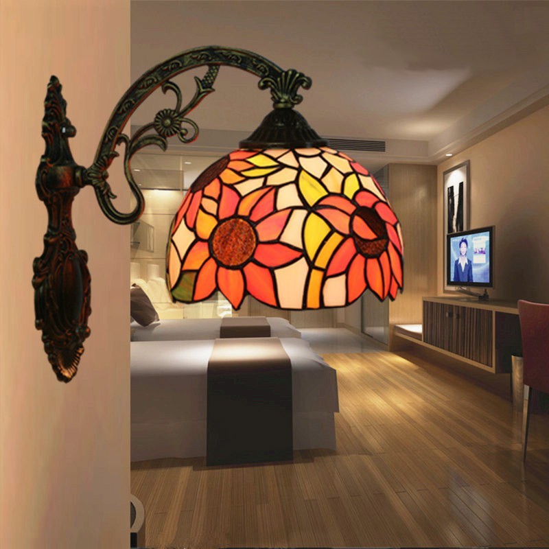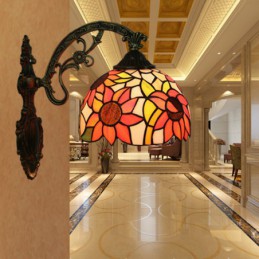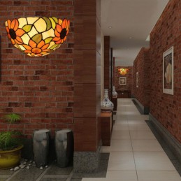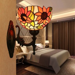 20 cm Eiropas vitrāžas saulespuķu stila Tiffany sienas lampa
