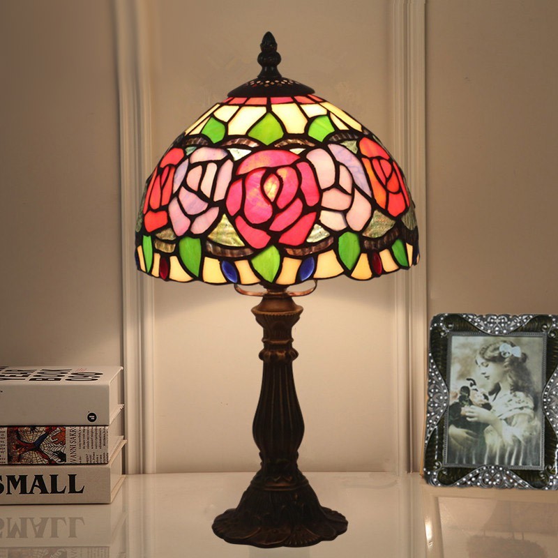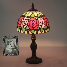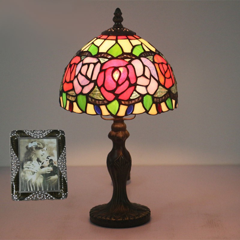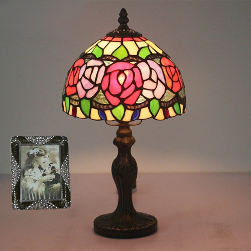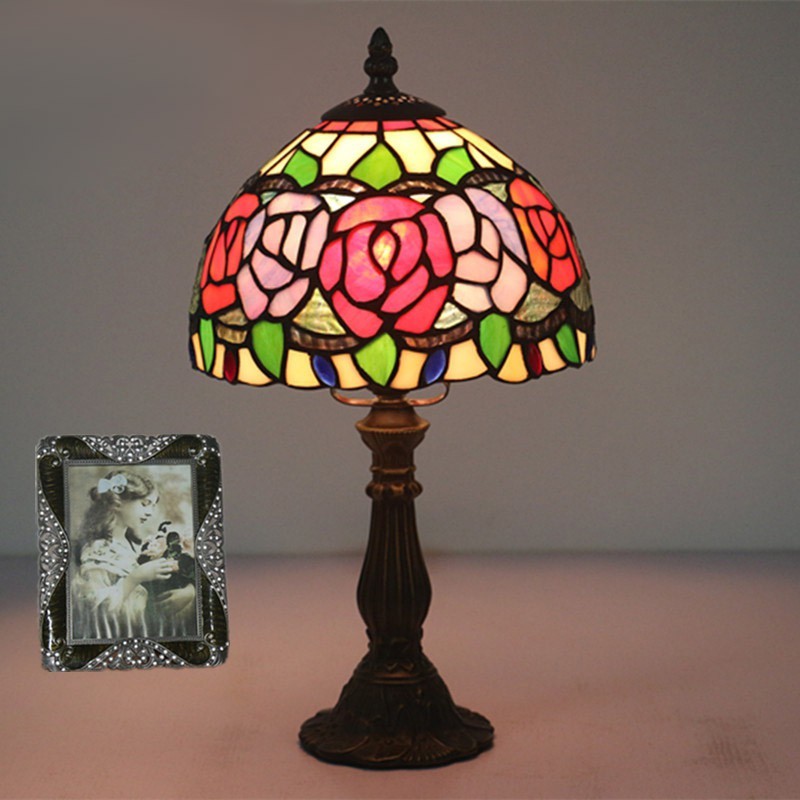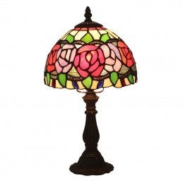 20 cm Eiropas vitrāžas rožu stila Tiffany galda lampa