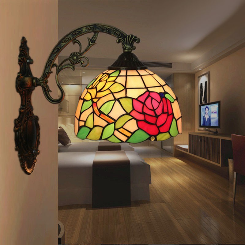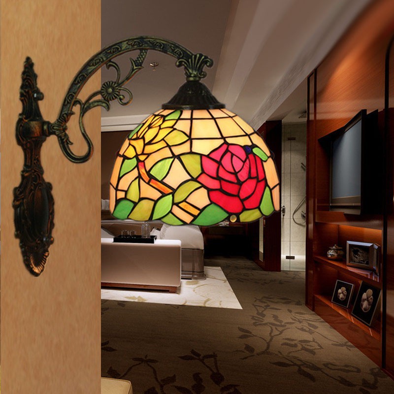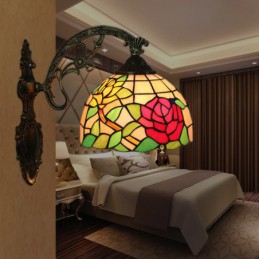 20 cm Eiropas vitrāžas rožu stila Tiffany sienas lampa