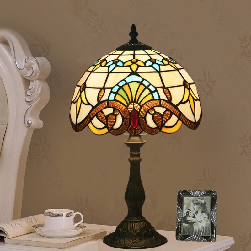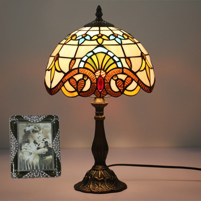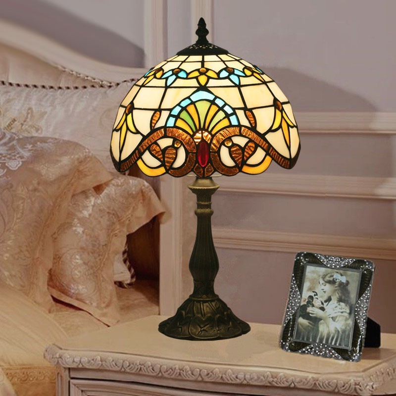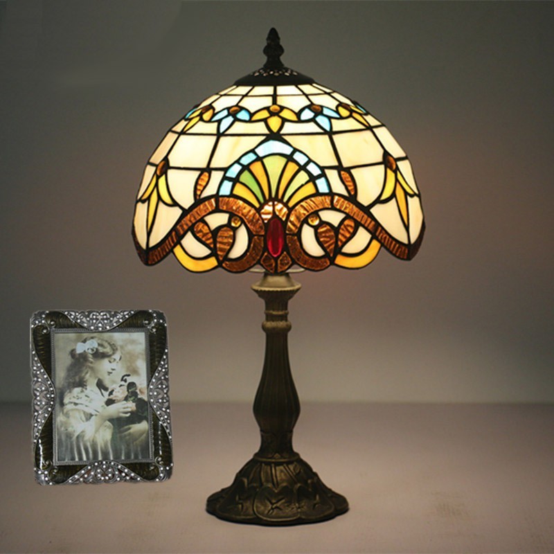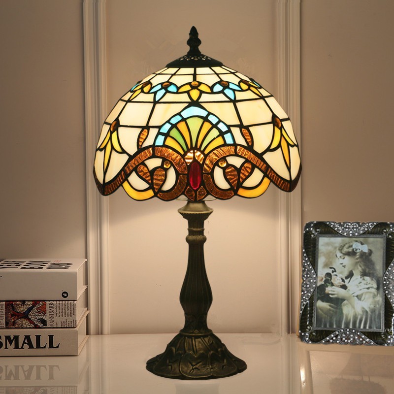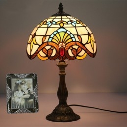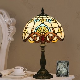 25 cm Eiropas vitrāžas baroka stila Tiffany galda lampa