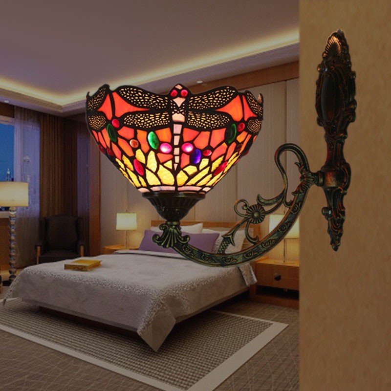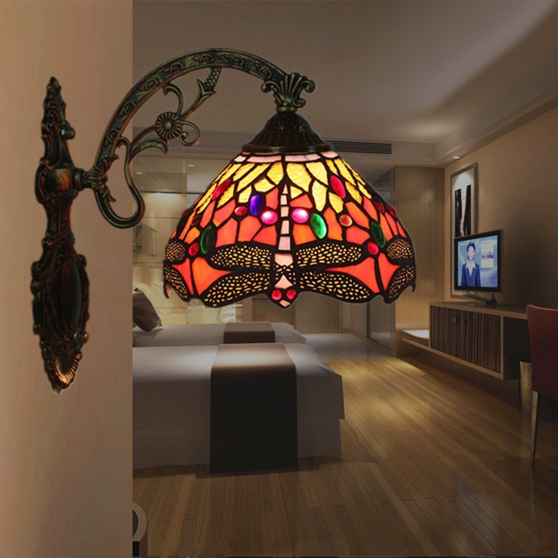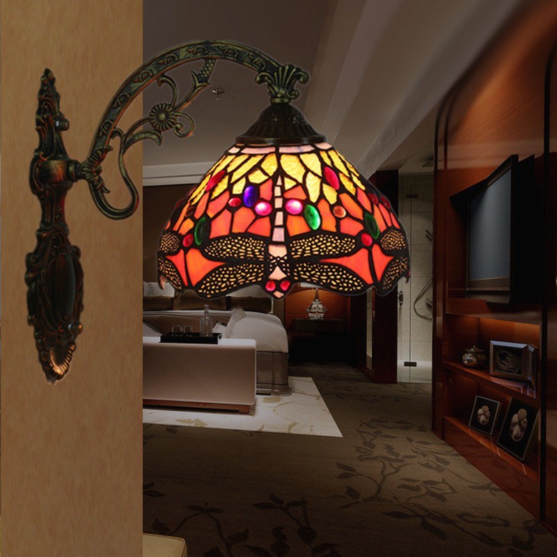 20 cm Eiropas vitrāžas spāres stila Tiffany sienas lampa