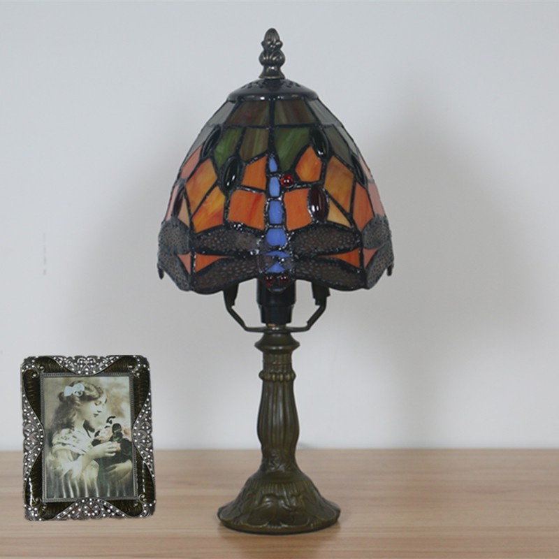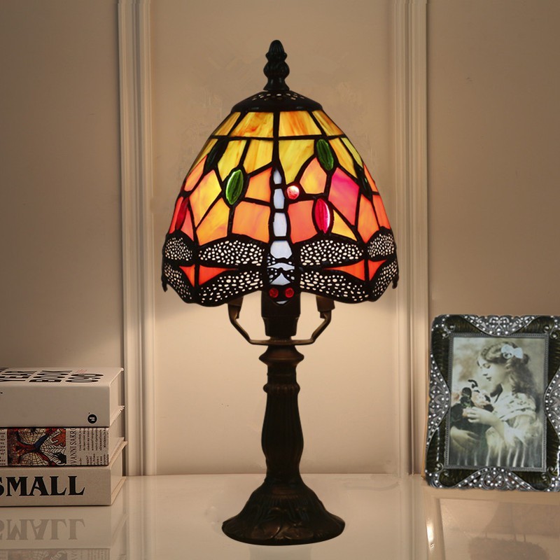 15 cm Eiropas vitrāžas spāres stila Tiffany galda lampa