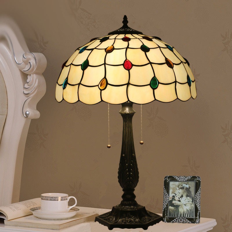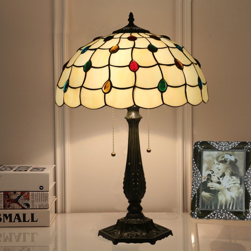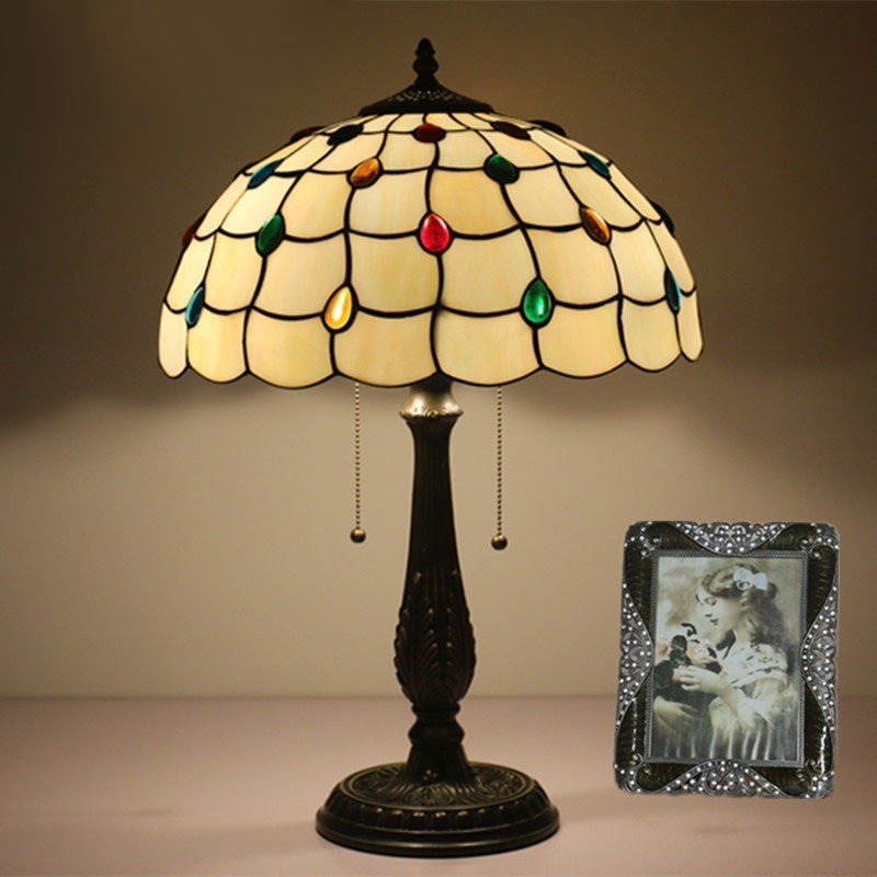 40 cm Eiropas vitrāžas Tiffany galda lampa