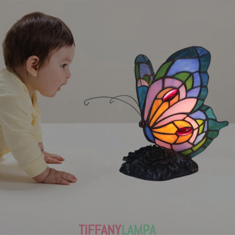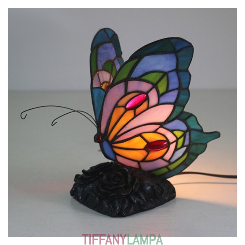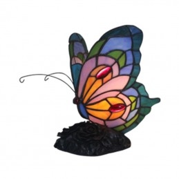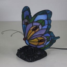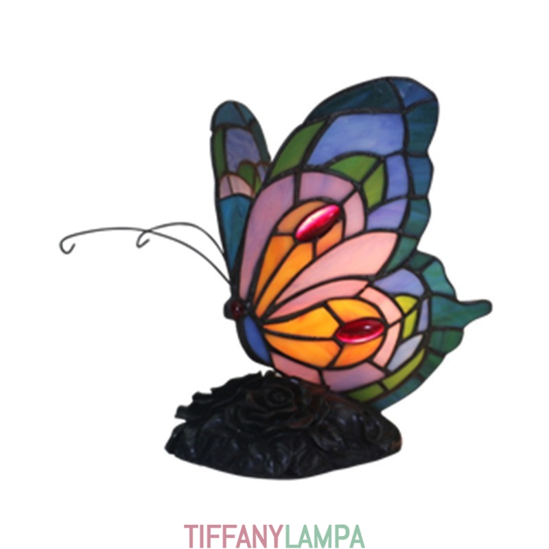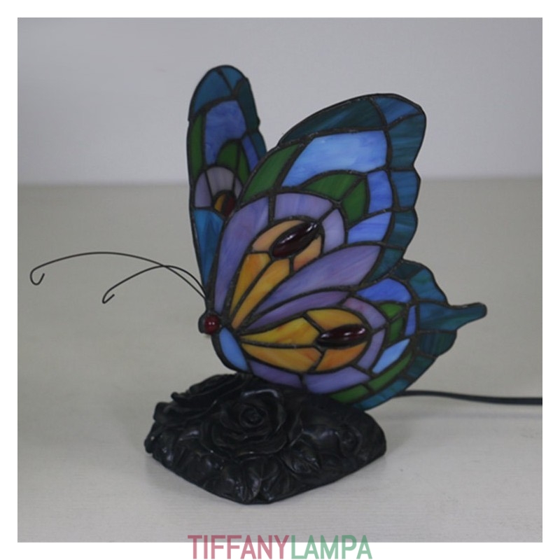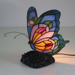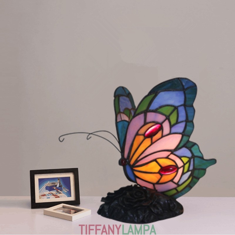 Eiropas vitrāžas tauriņu stila Tiffany galda lampa