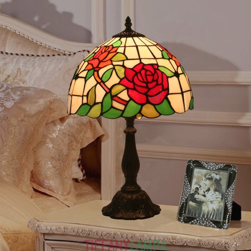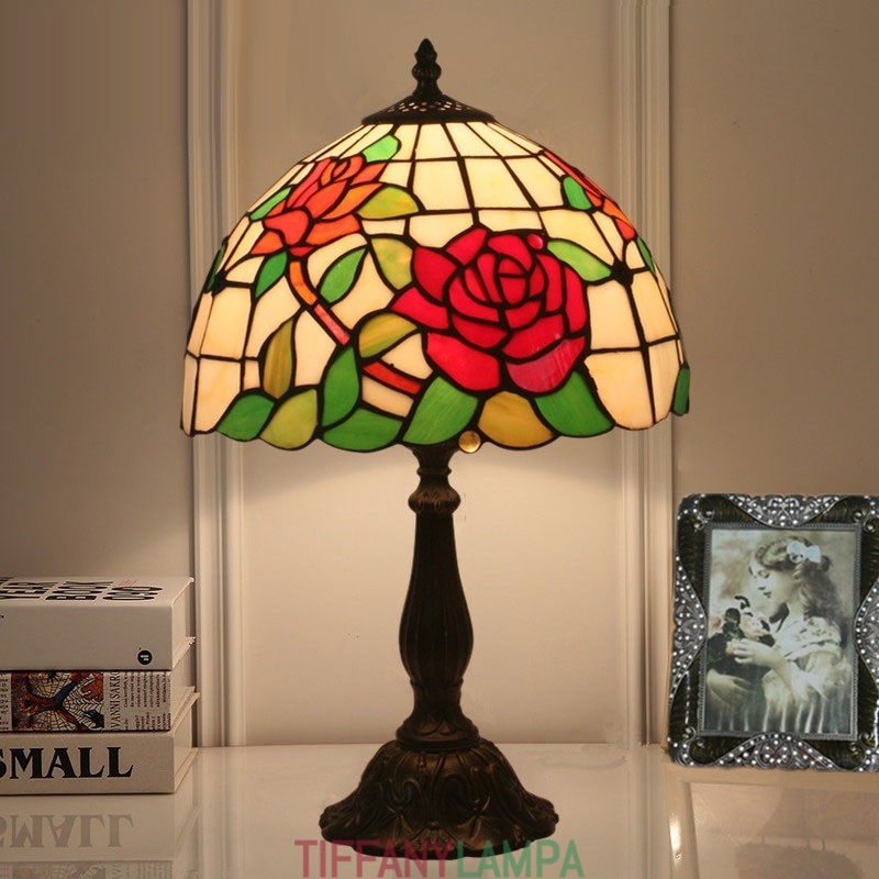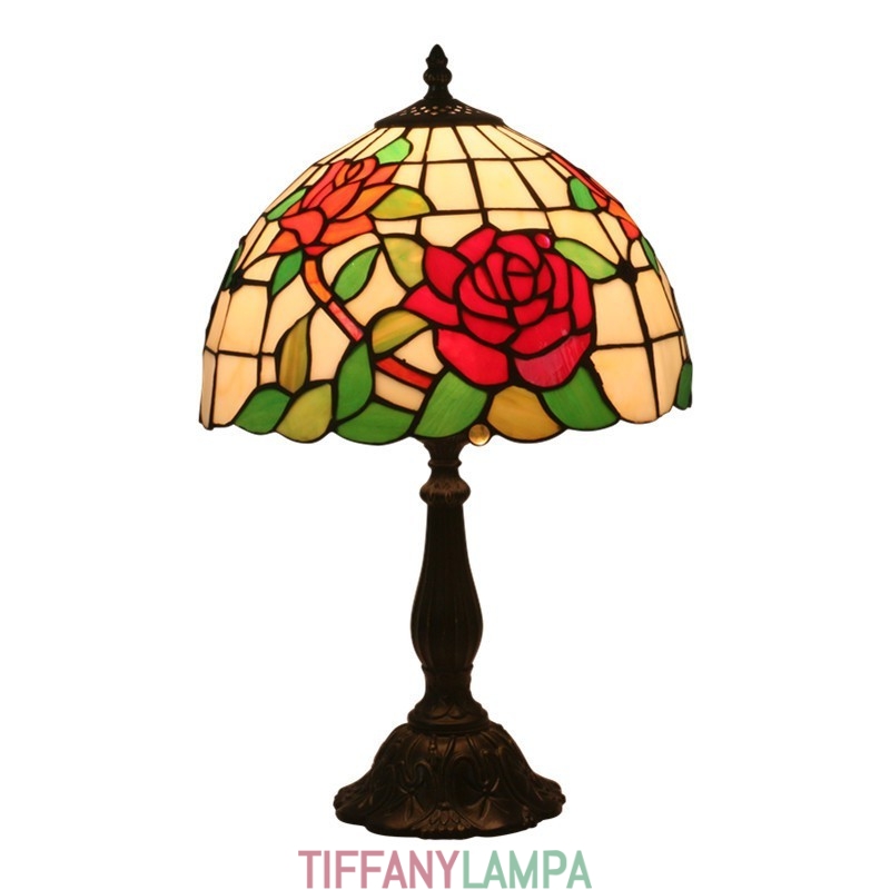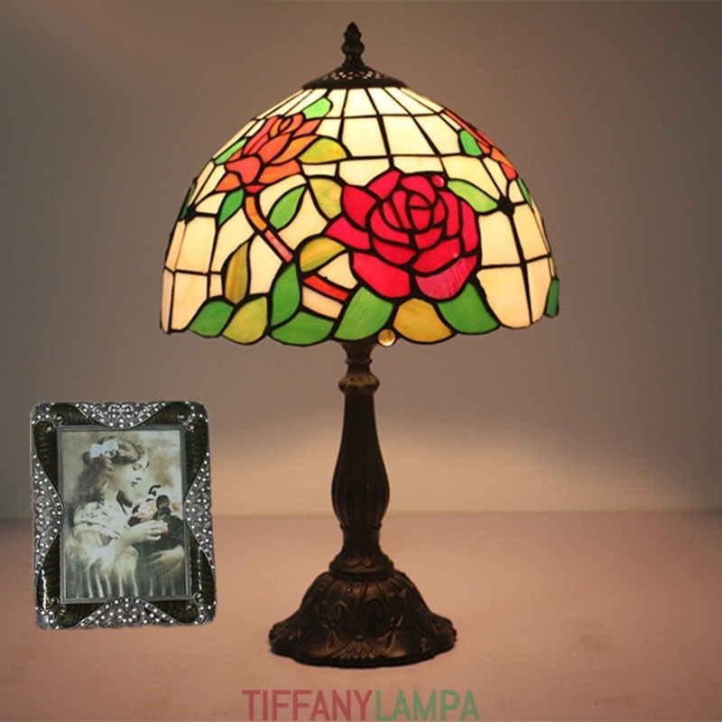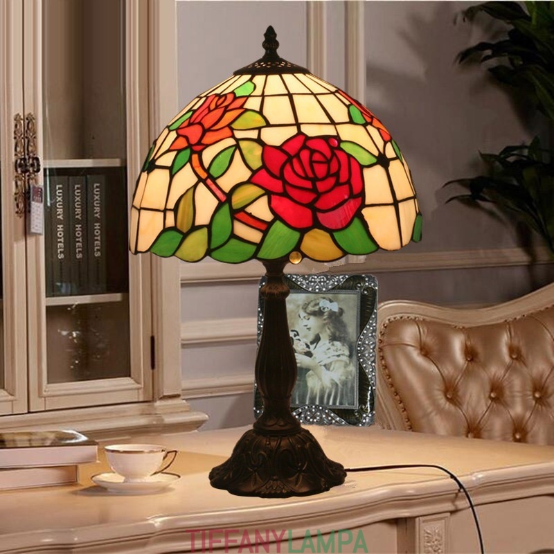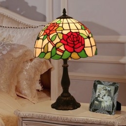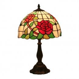 30 cm Eiropas vitrāžas rožu stila Tiffany galda lampa