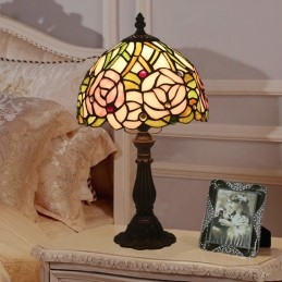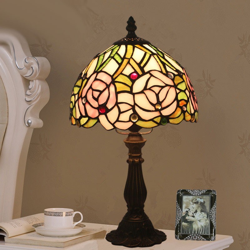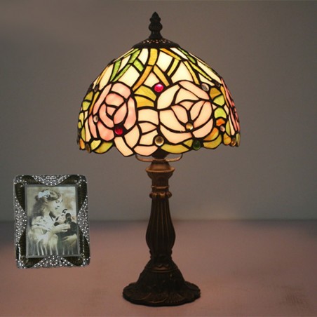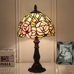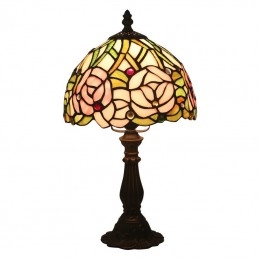 20 cm Eiropas vitrāžas rožu stila Tiffany galda lampa