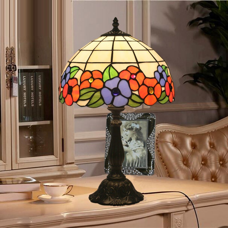 30 cm Eiropas vitrāžas Tiffany galda lampa