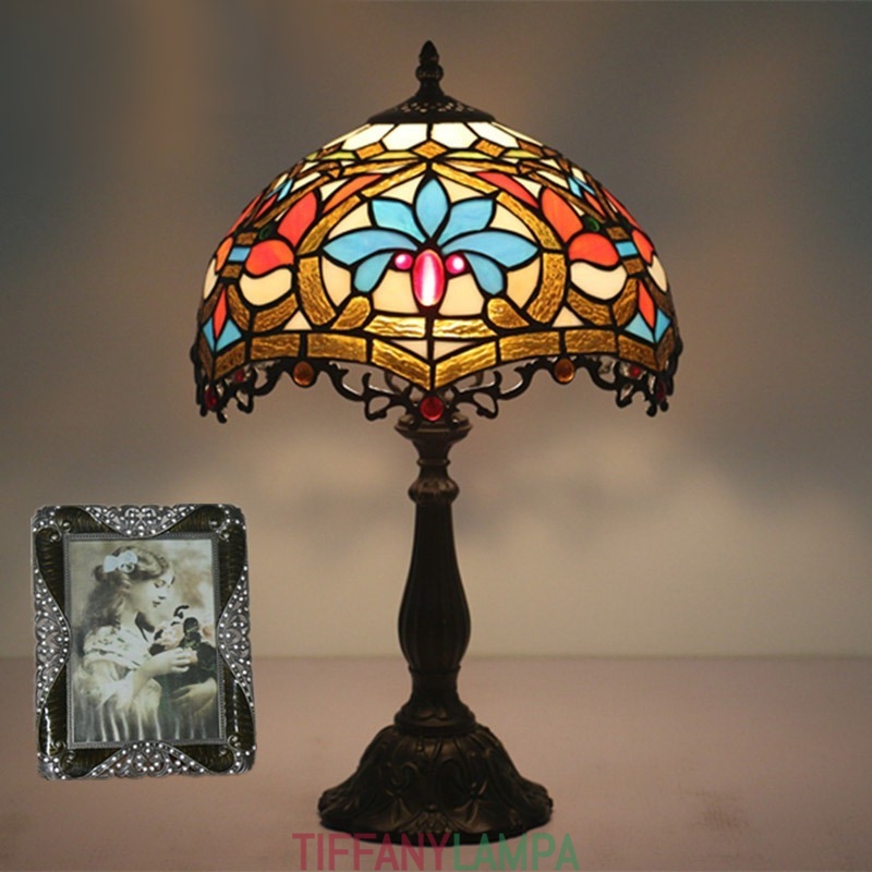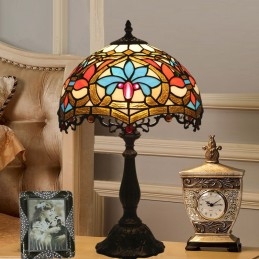 30 cm Eiropas vitrāžas baroka stila Tiffany galda lampa