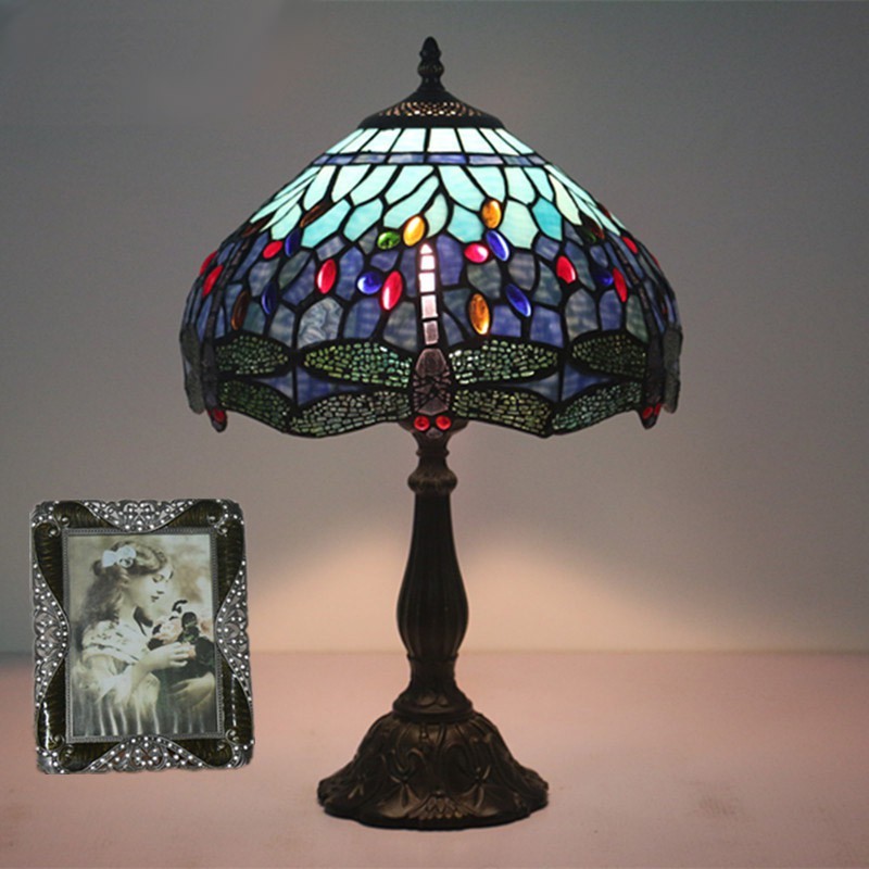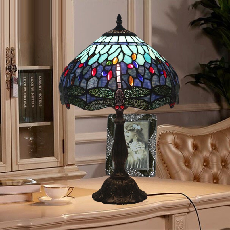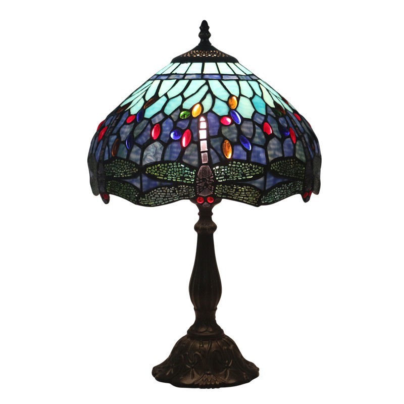 30 cm Eiropas vitrāžas spāres stila Tiffany galda lampa