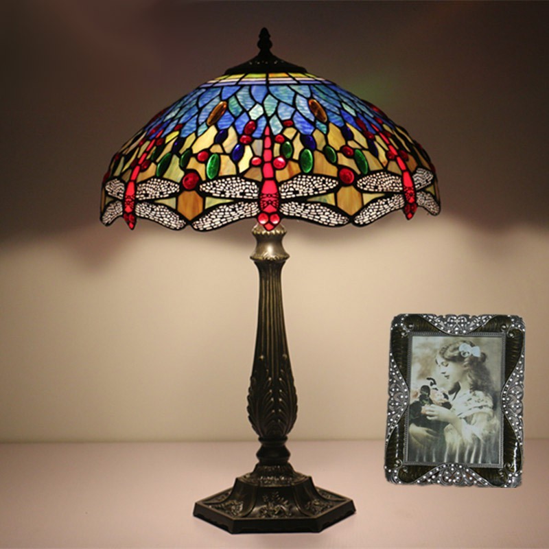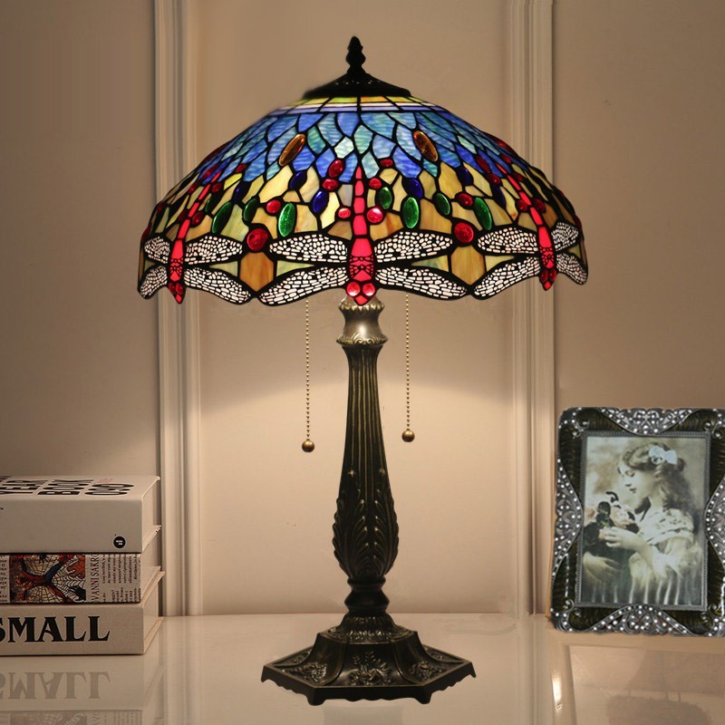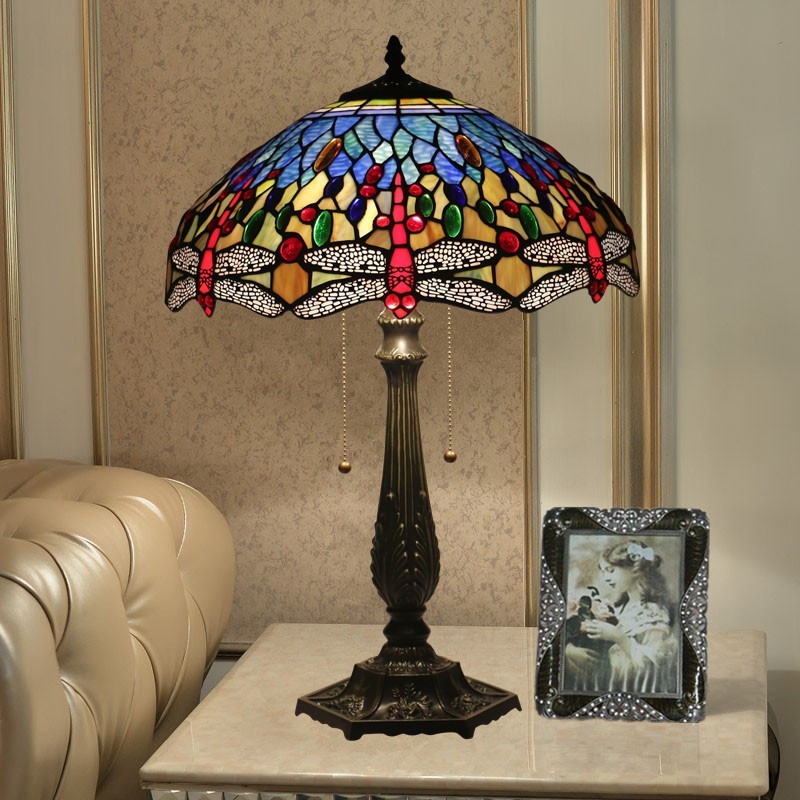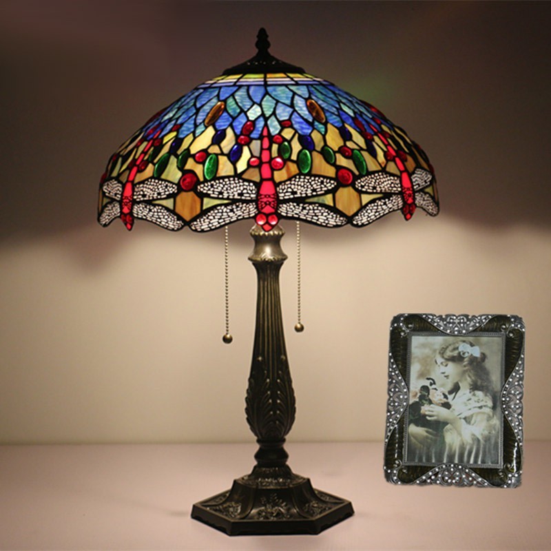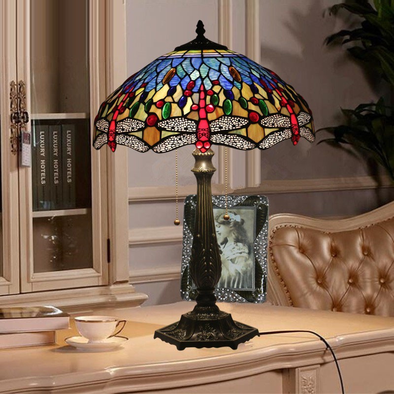 40 cm Eiropas vitrāžas spāres stila Tiffany galda lampa