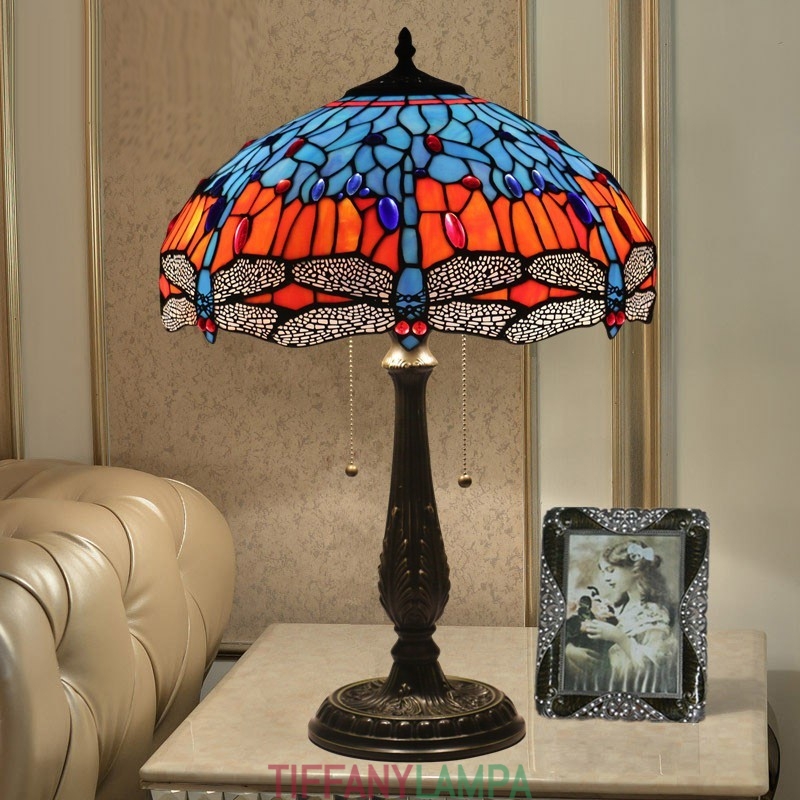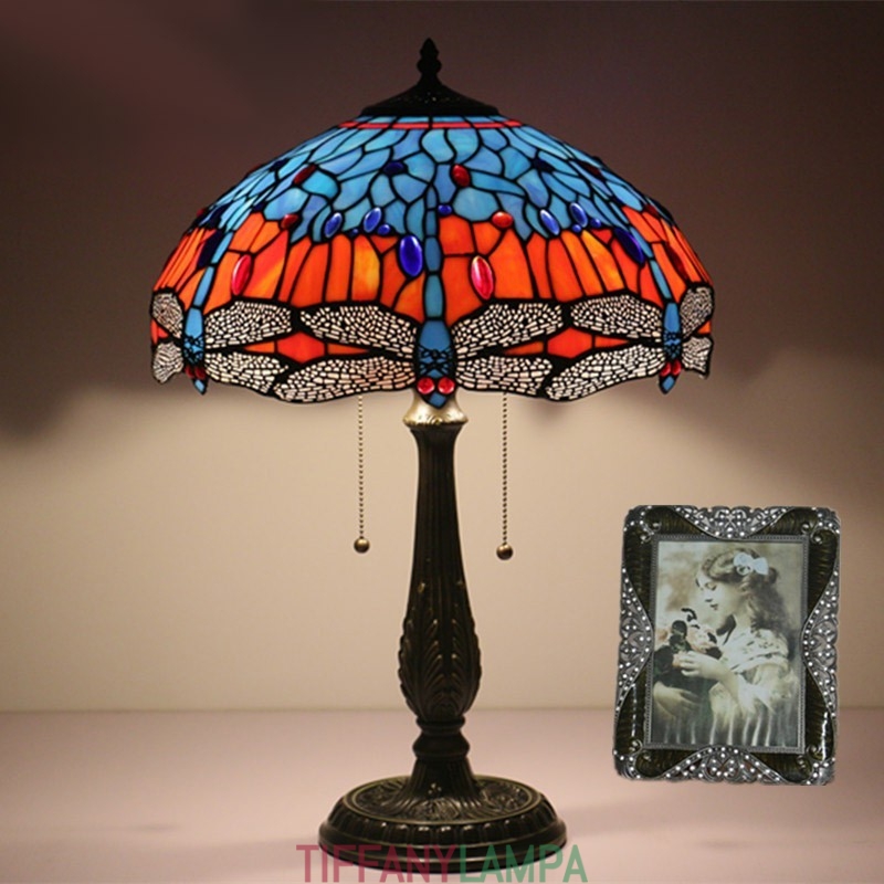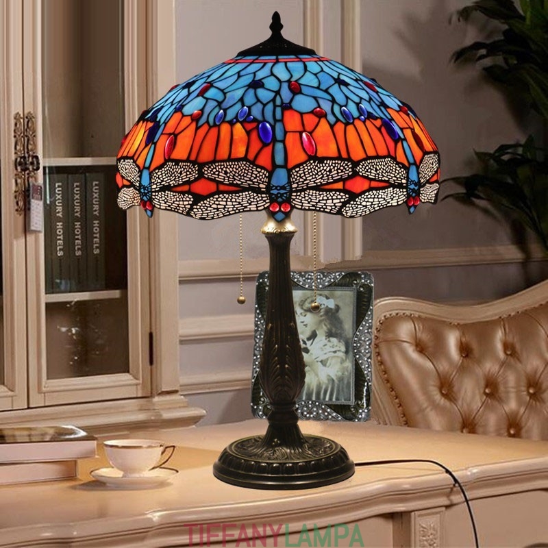 40 cm Eiropas vitrāžas spāres stila Tiffany galda lampa