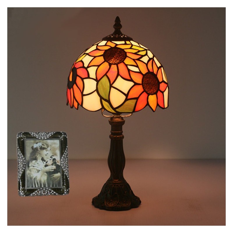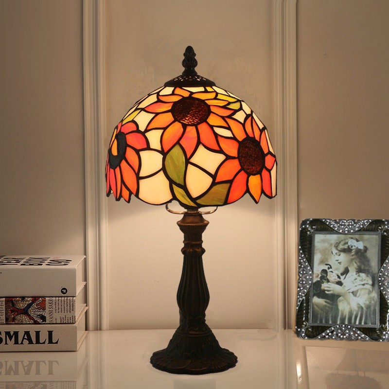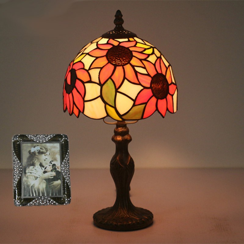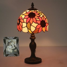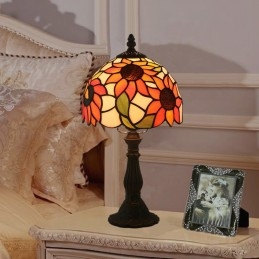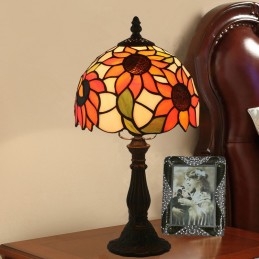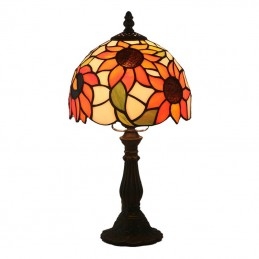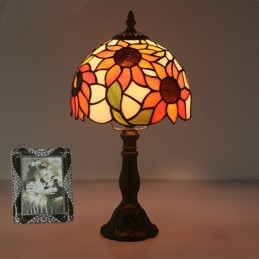 20 cm lauku vitrāžas saulespuķu stila Tiffany galda lampa