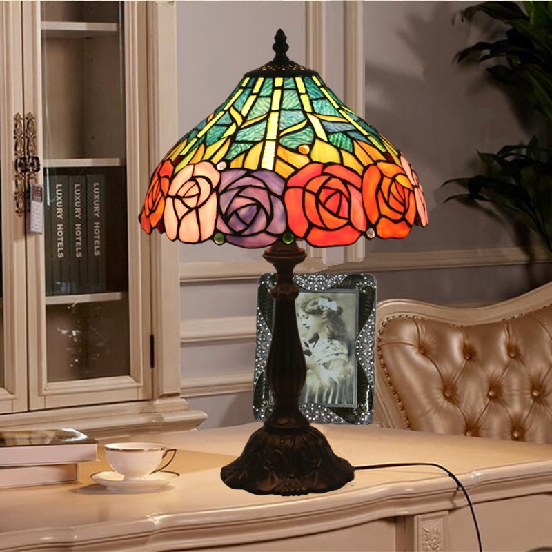 30 cm Eiropas vitrāžas Tiffany galda lampa
