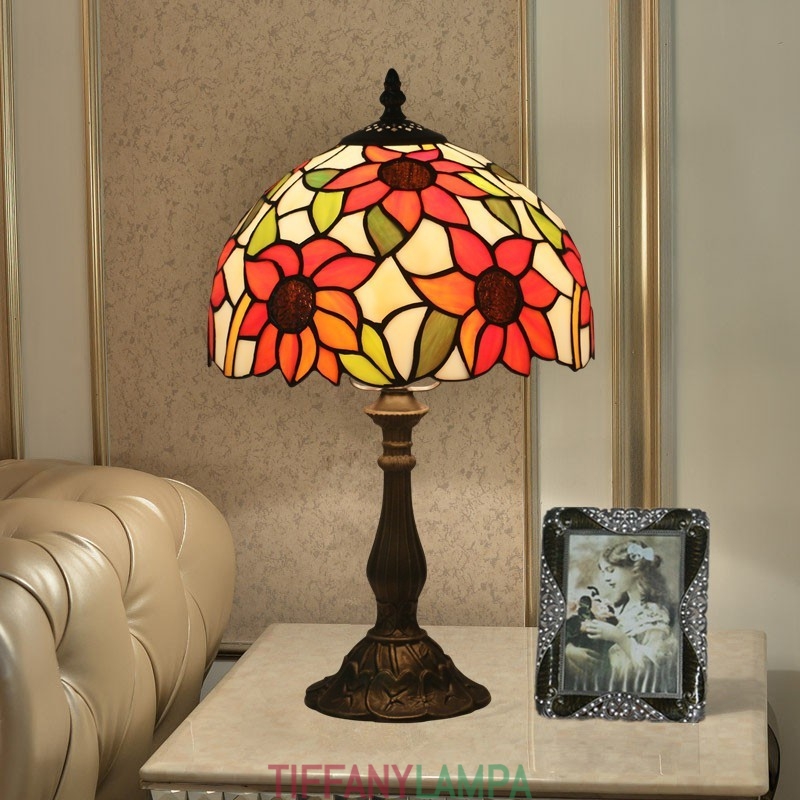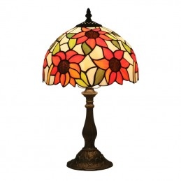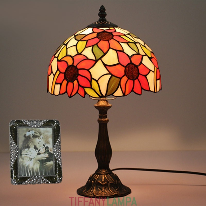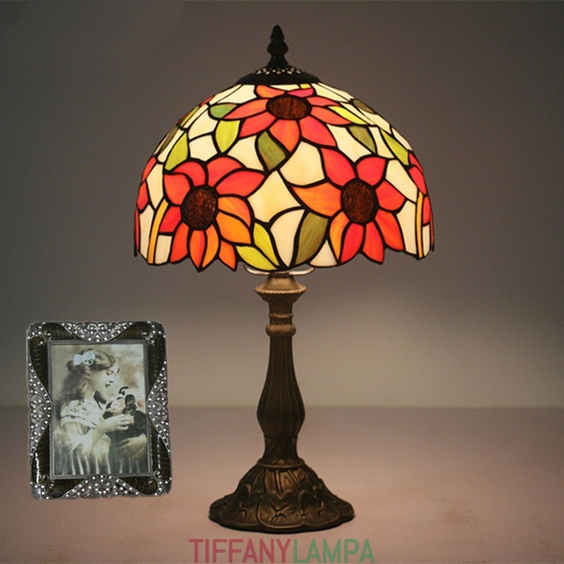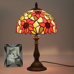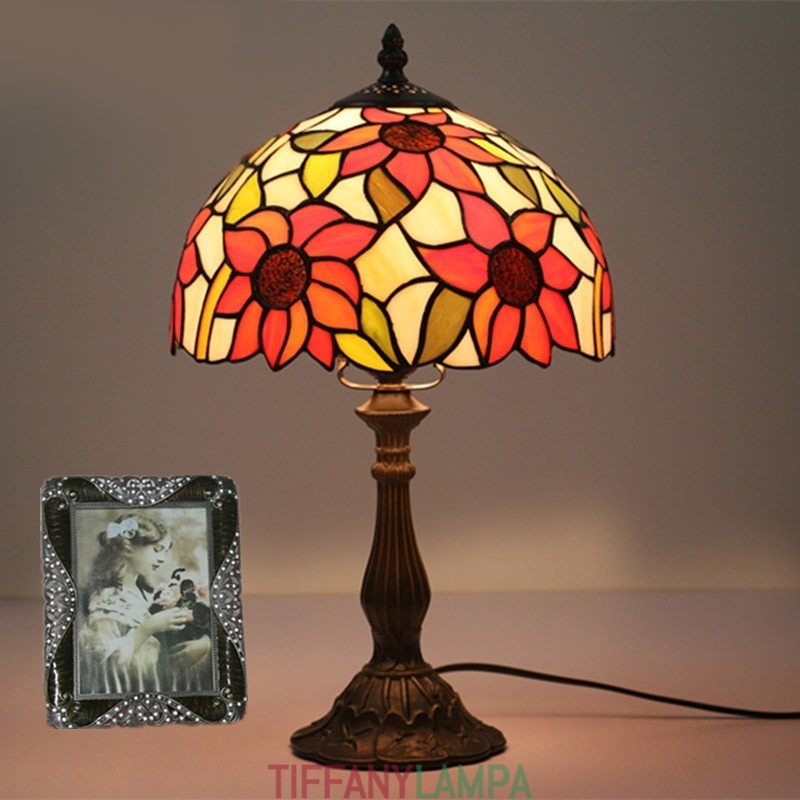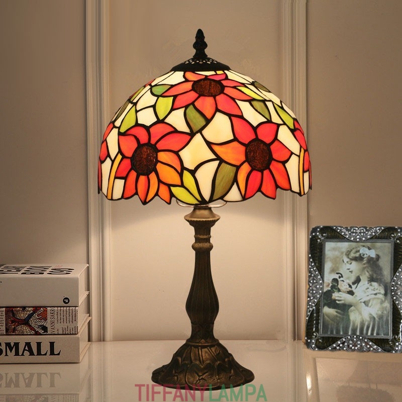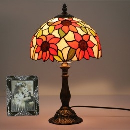 25 cm Eiropas vitrāžas saulespuķu stila Tiffany galda lampa