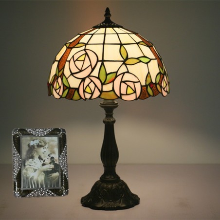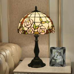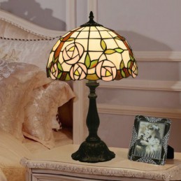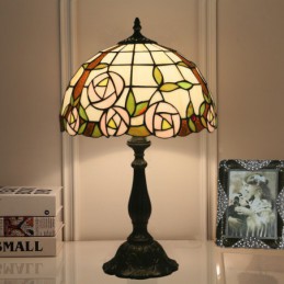 30 cm Eiropas vitrāžas rožu stila Tiffany galda lampa
