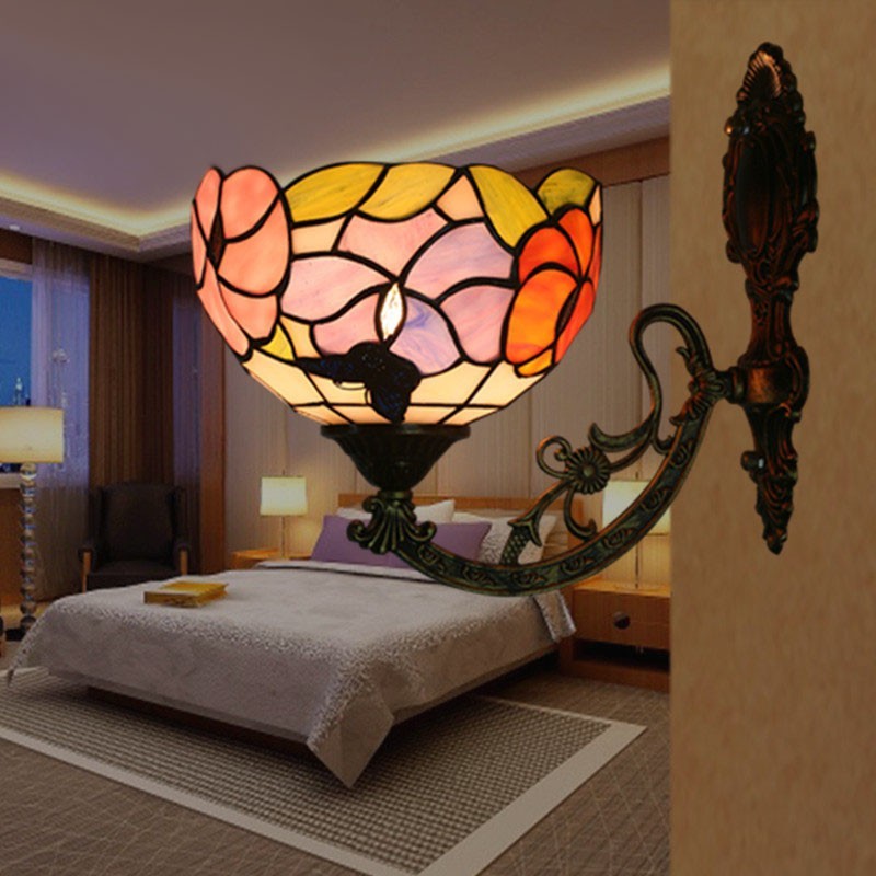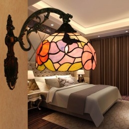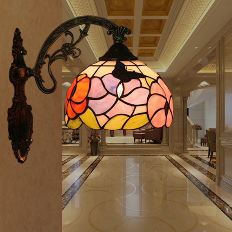 20 cm Eiropas vitrāžas tauriņu stila Tiffany sienas lampa