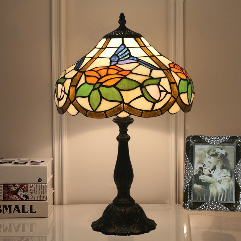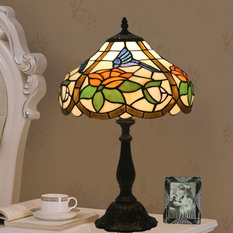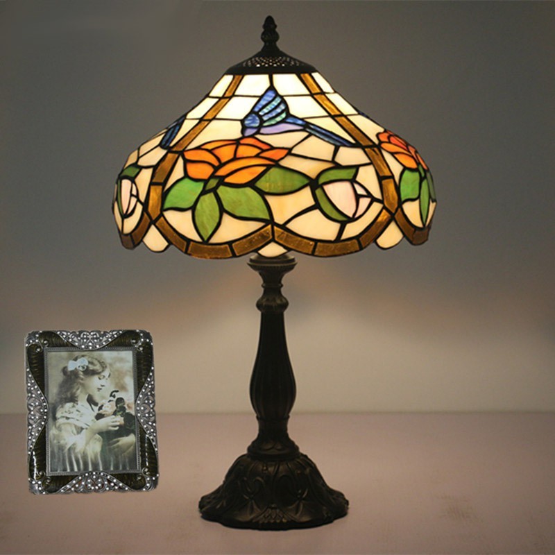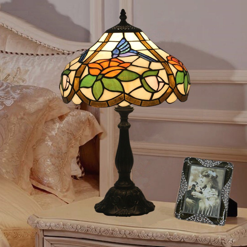 30 cm Eiropas vitrāžas kolibri stila Tiffany galda lampa