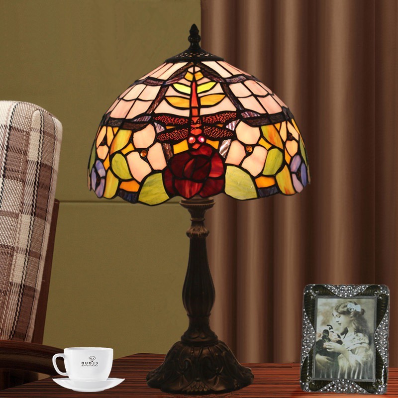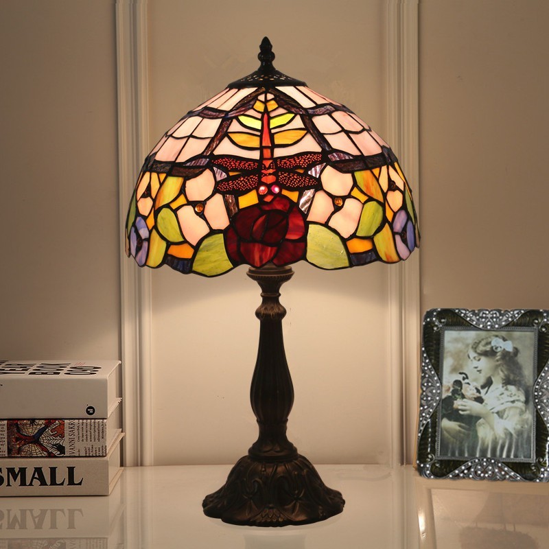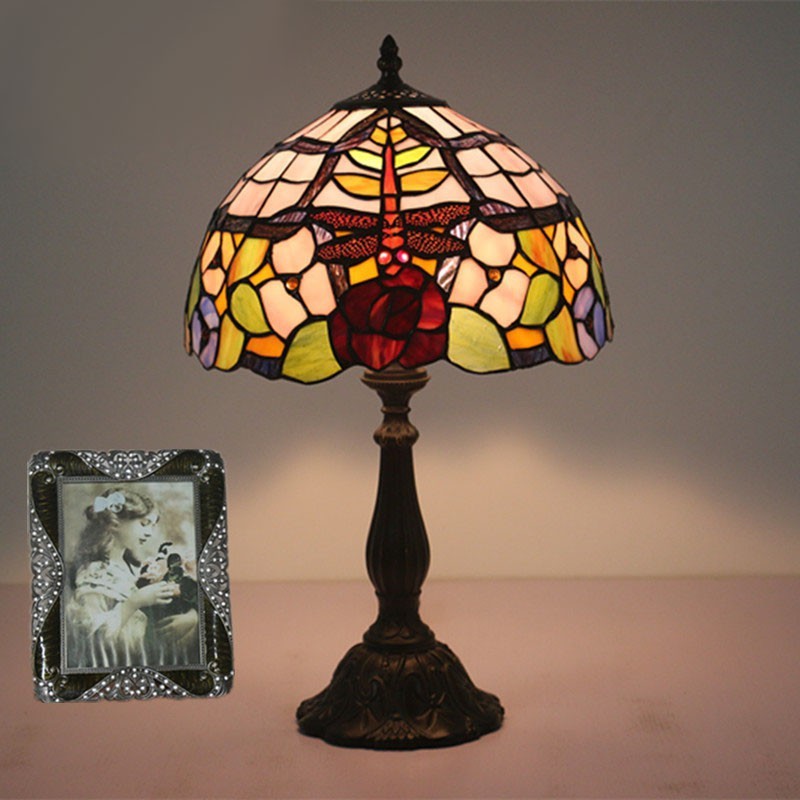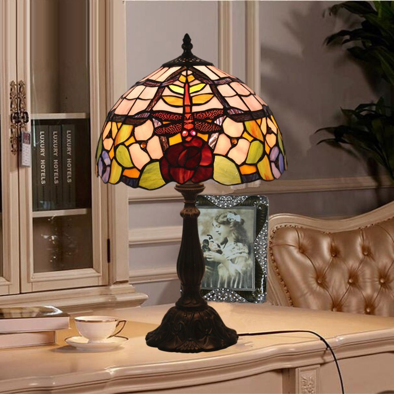 30 cm Eiropas vitrāžas spāres stila Tiffany galda lampa
