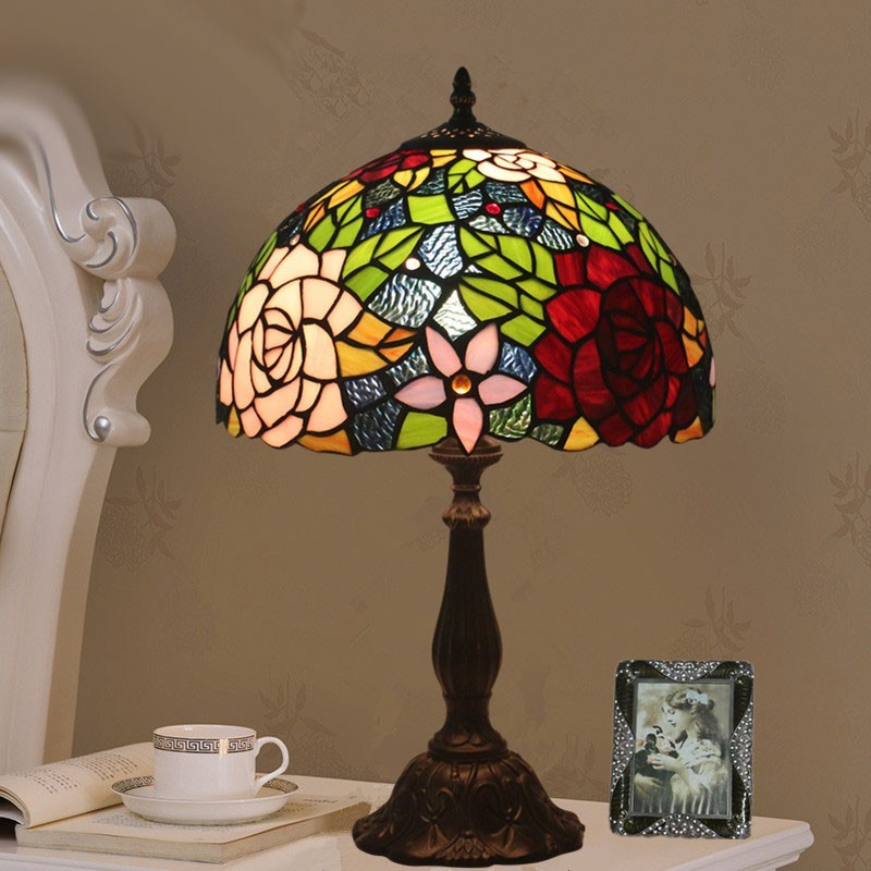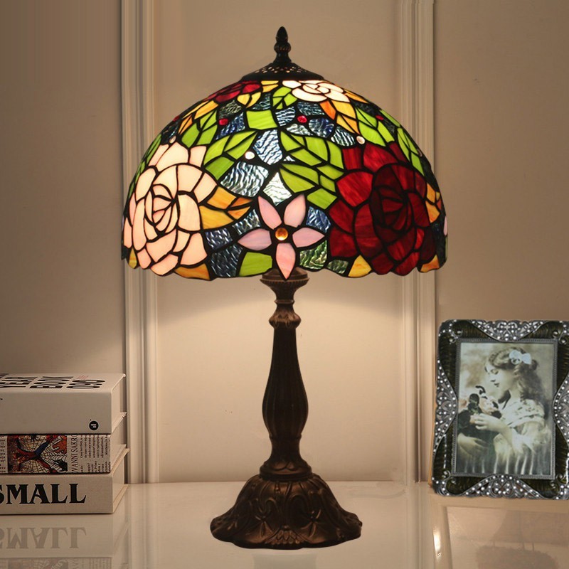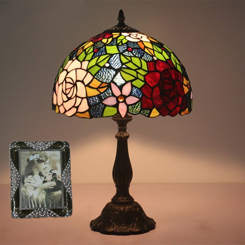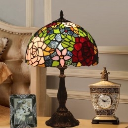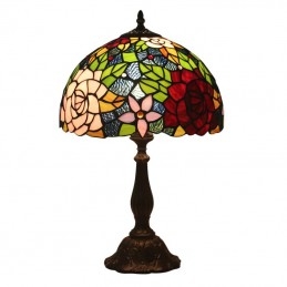 30 cm Eiropas vitrāžas rožu stila Tiffany galda lampa