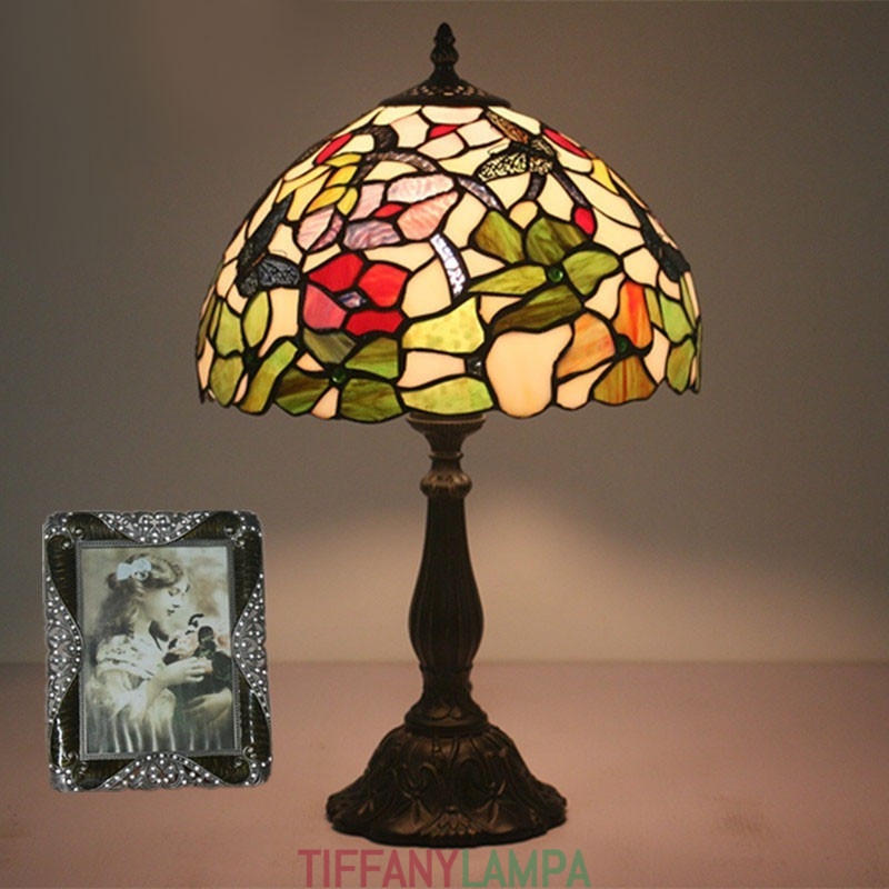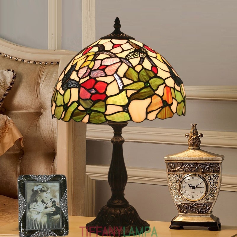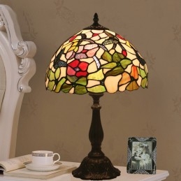 30 cm Eiropas vitrāžas tauriņu stila Tiffany galda lampa