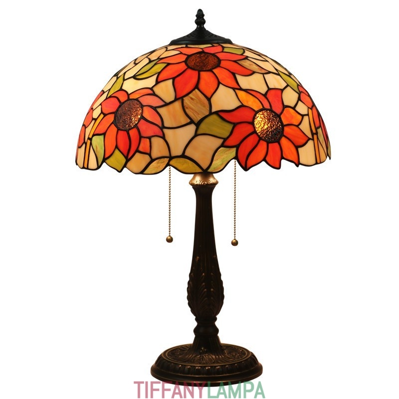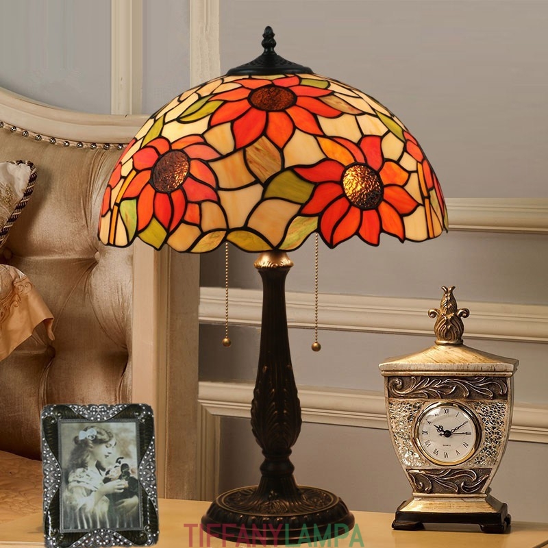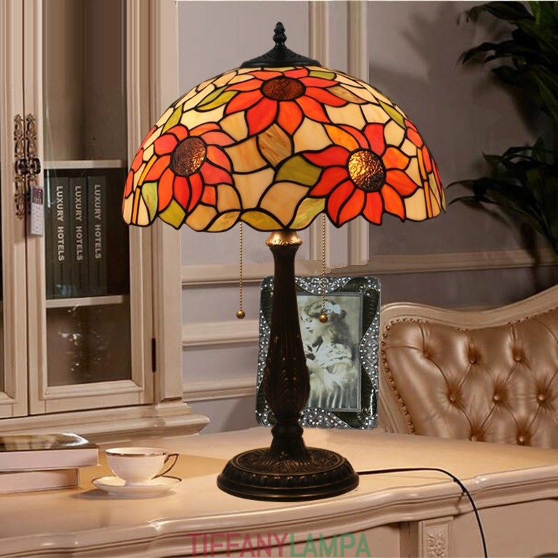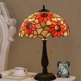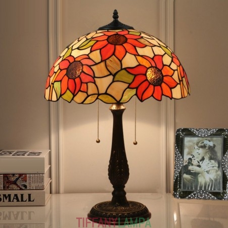 40 cm Eiropas vitrāžas saulespuķu stila Tiffany galda lampa