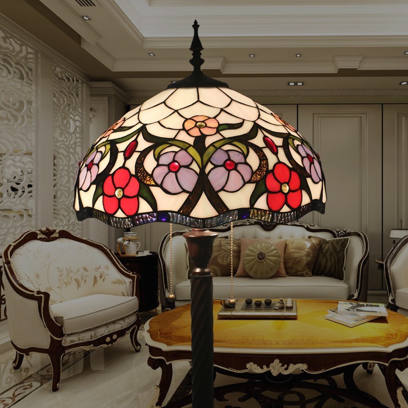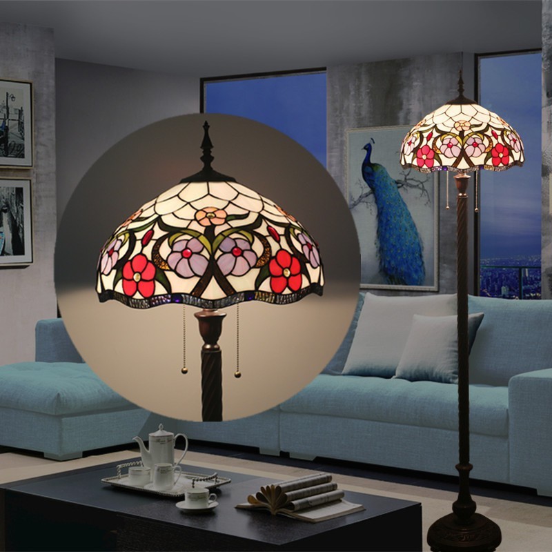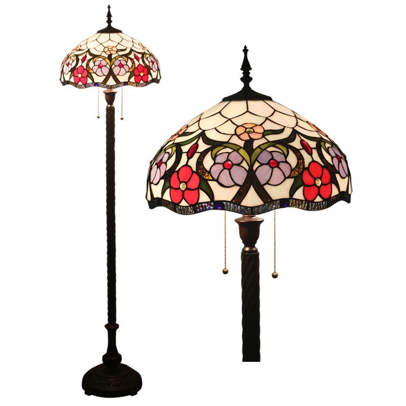 40 cm Eiropas retro vitrāžas Tiffany stāvlampa