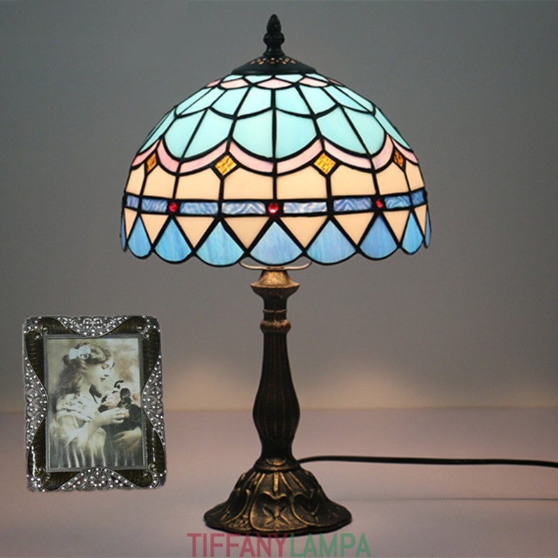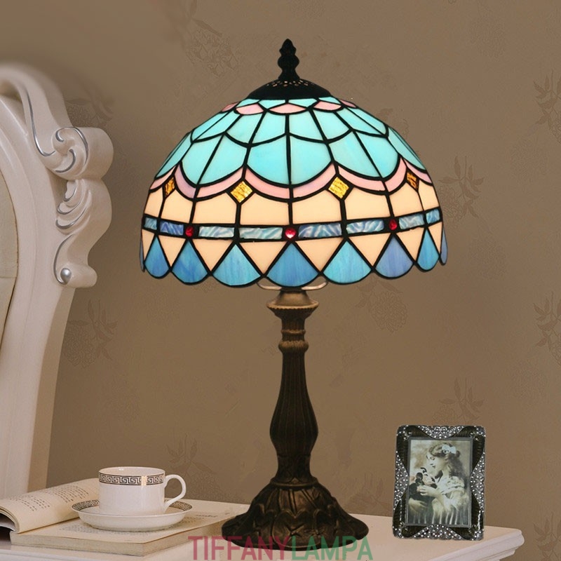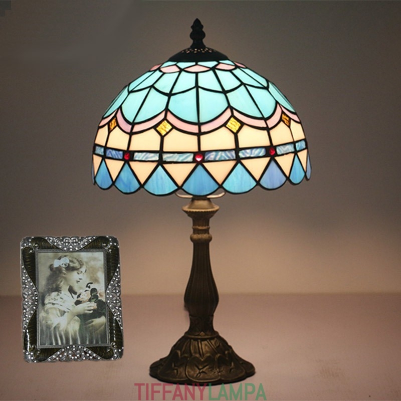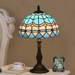 25 cm Vidusjūras vitrāžas Vidusjūras stila Tiffany galda lampa