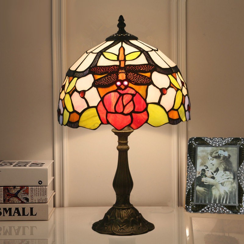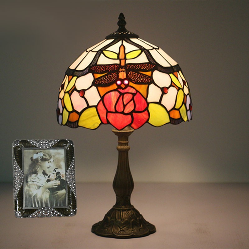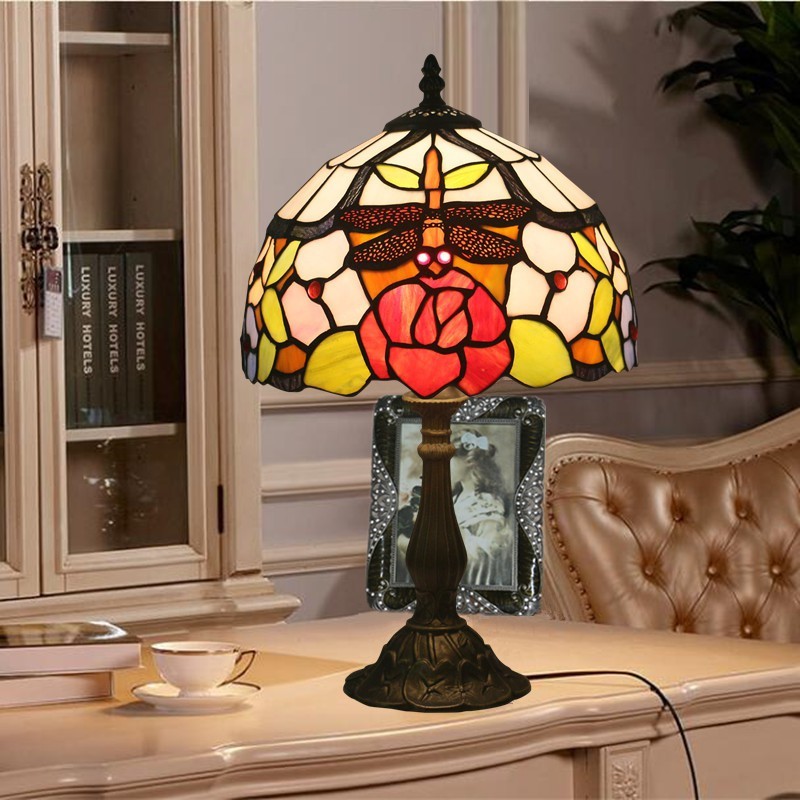 25 cm Eiropas vitrāžas spāres stila Tiffany galda lampa
