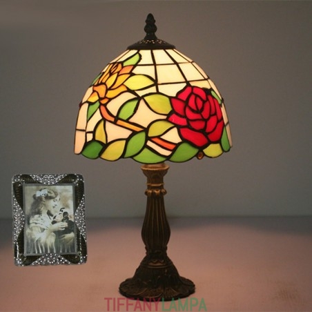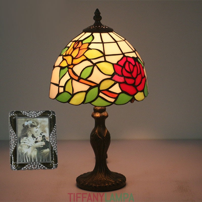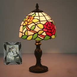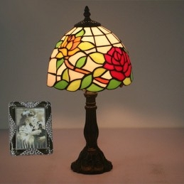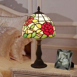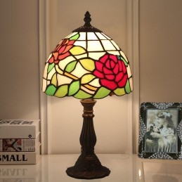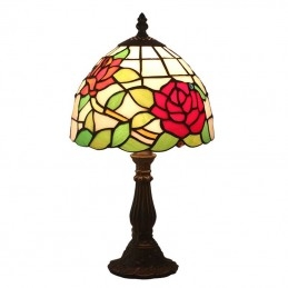 20 cm Eiropas vitrāžas rožu stila Tiffany galda lampa