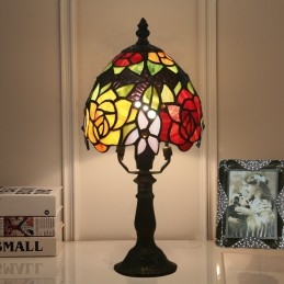 15 cm Eiropas vitrāžas rožu stila Tiffany galda lampa