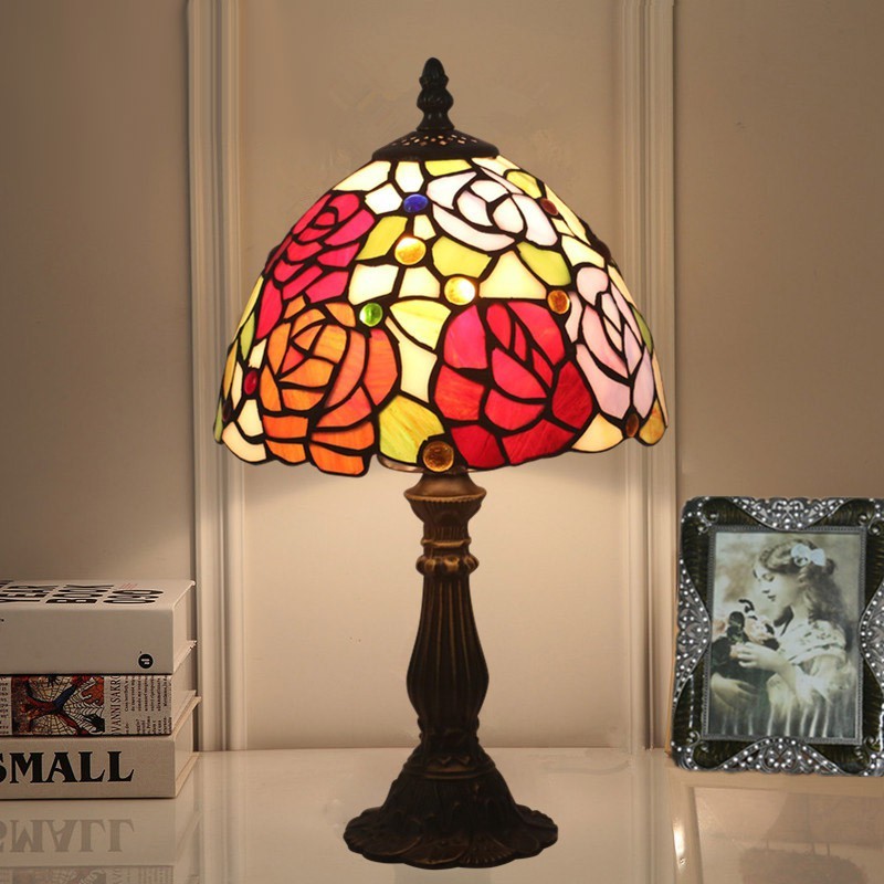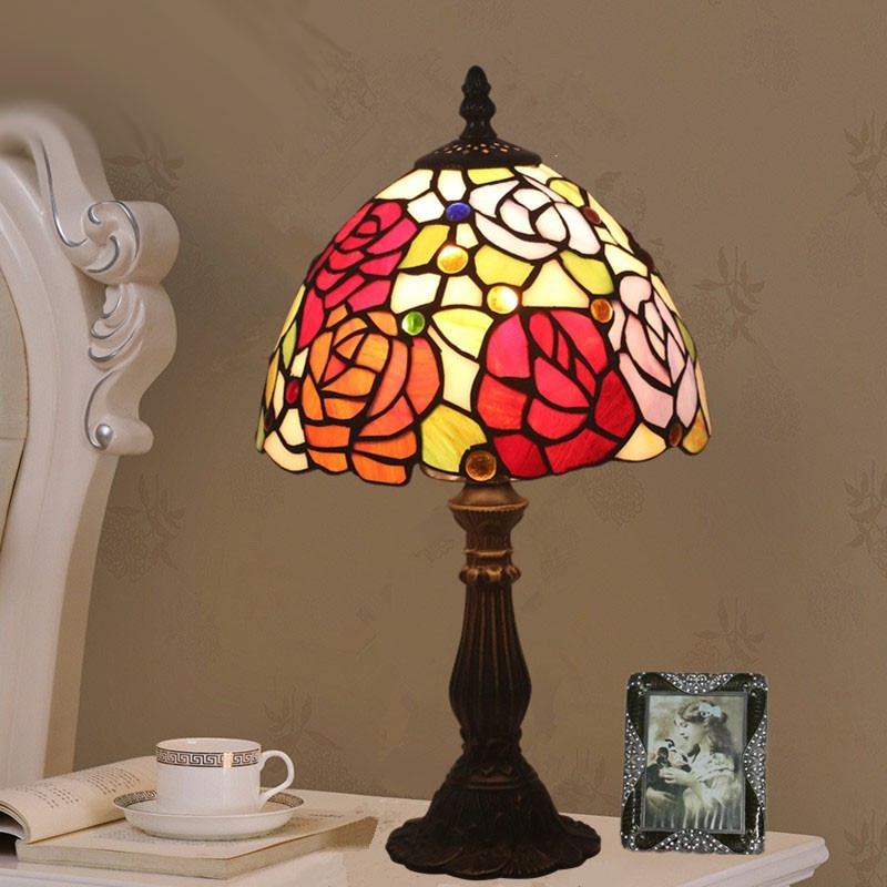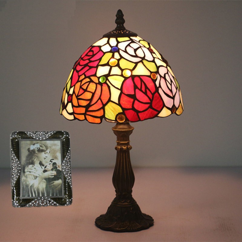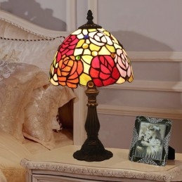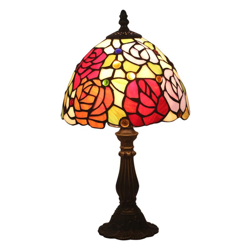 20 cm Eiropas vitrāžas rožu stila Tiffany galda lampa