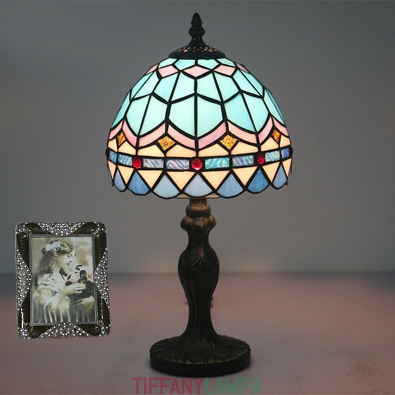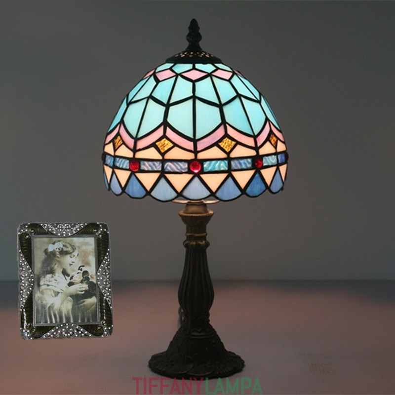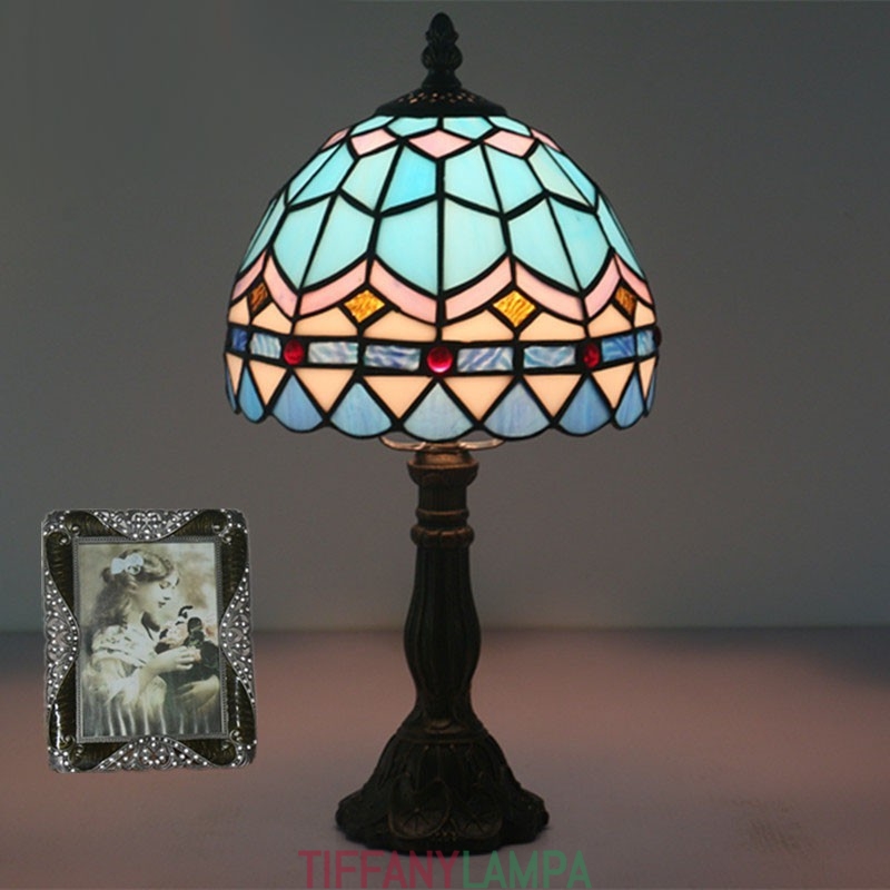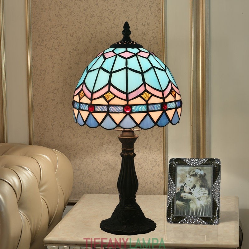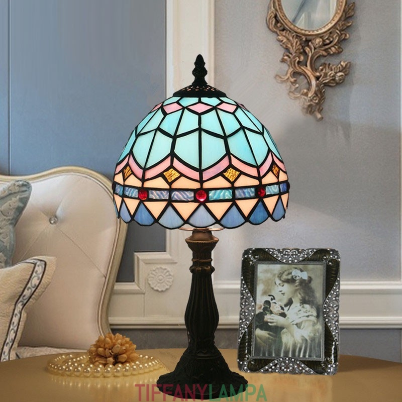 20 cm Eiropas vitrāžas Vidusjūras stila Tiffany galda lampa
