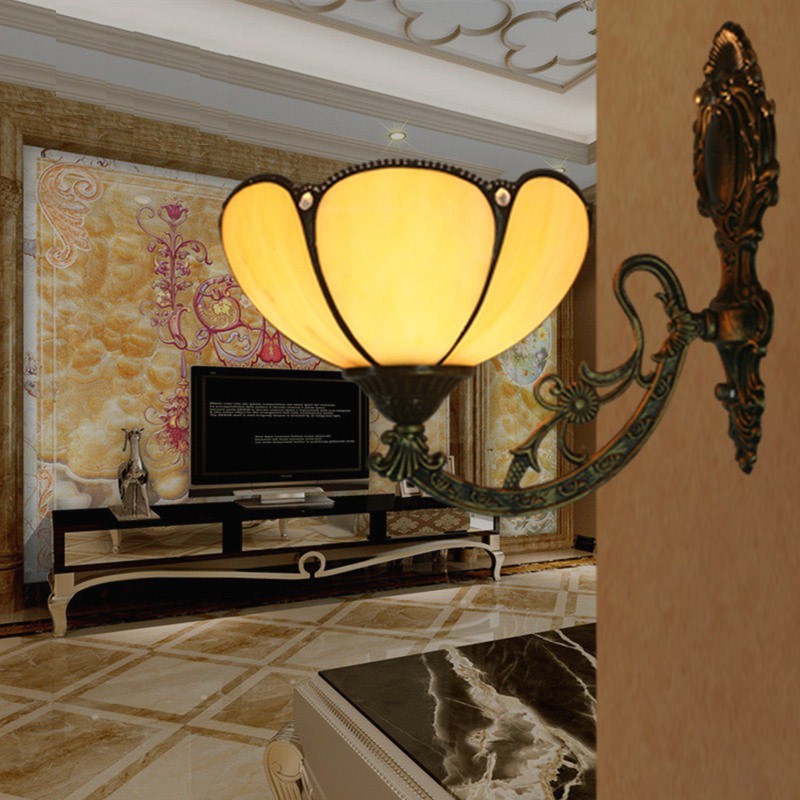 20 cm Amerikas vienkāršā vitrāžas pils stila Tiffany sienas lampiņa