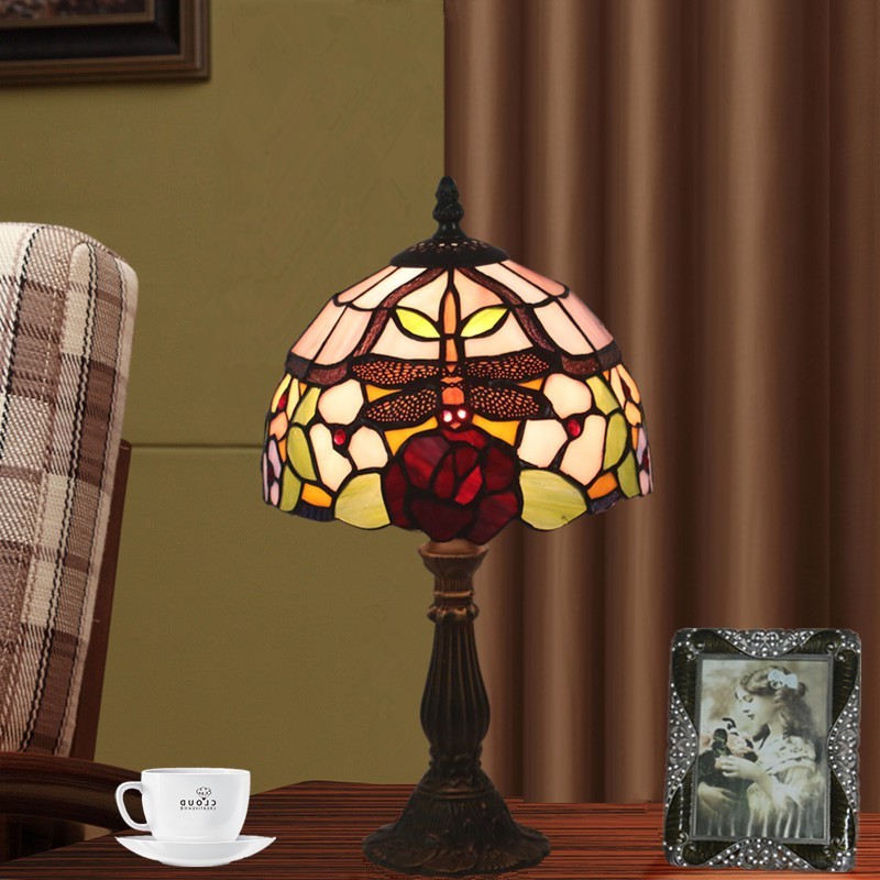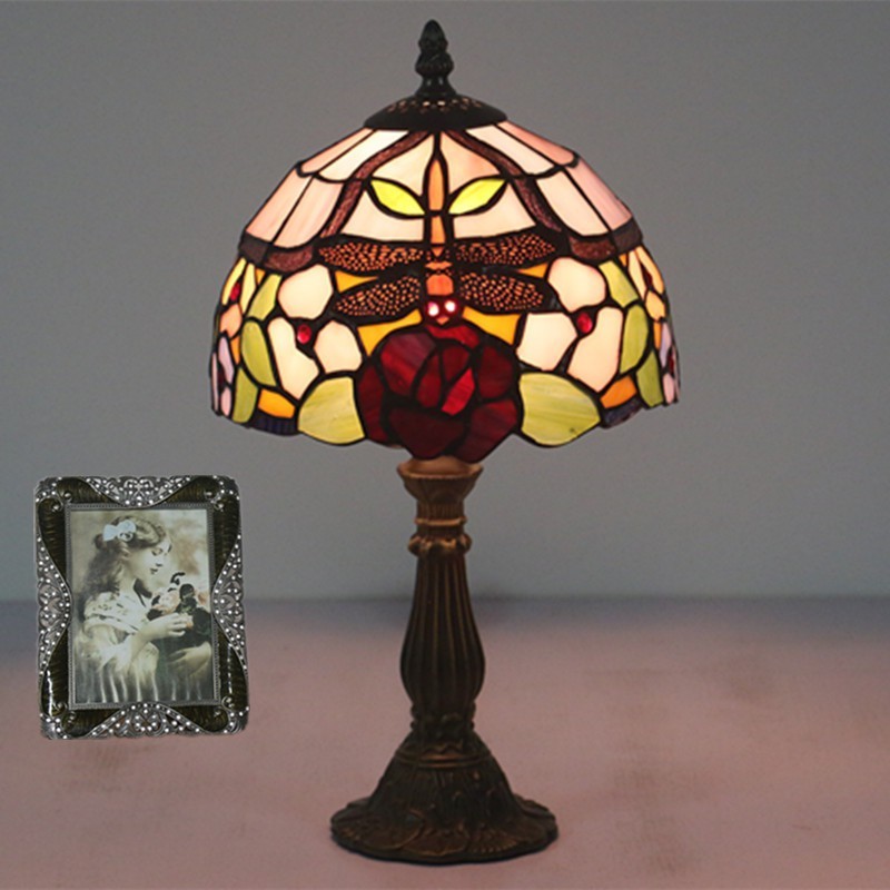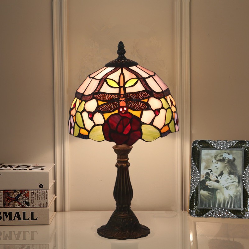 20 cm Eiropas vitrāžas spāres stila Tiffany galda lampa