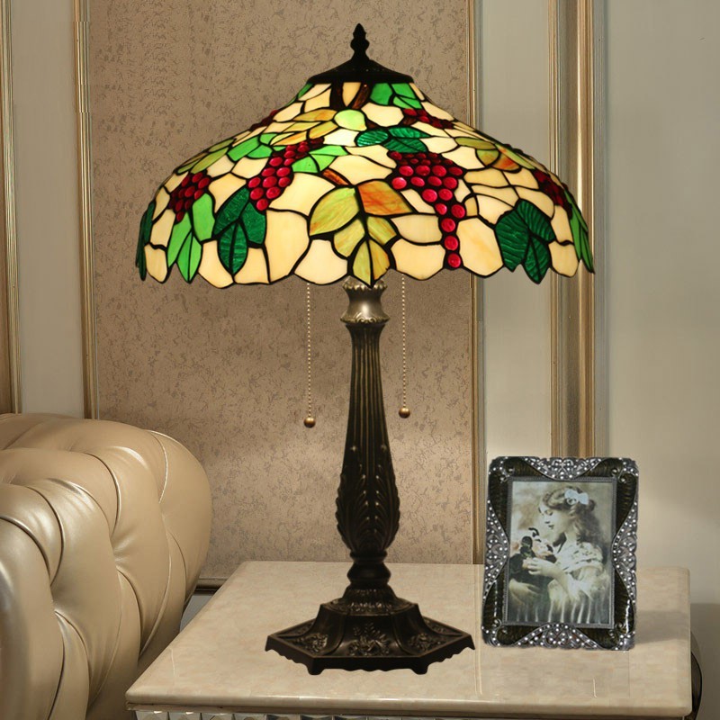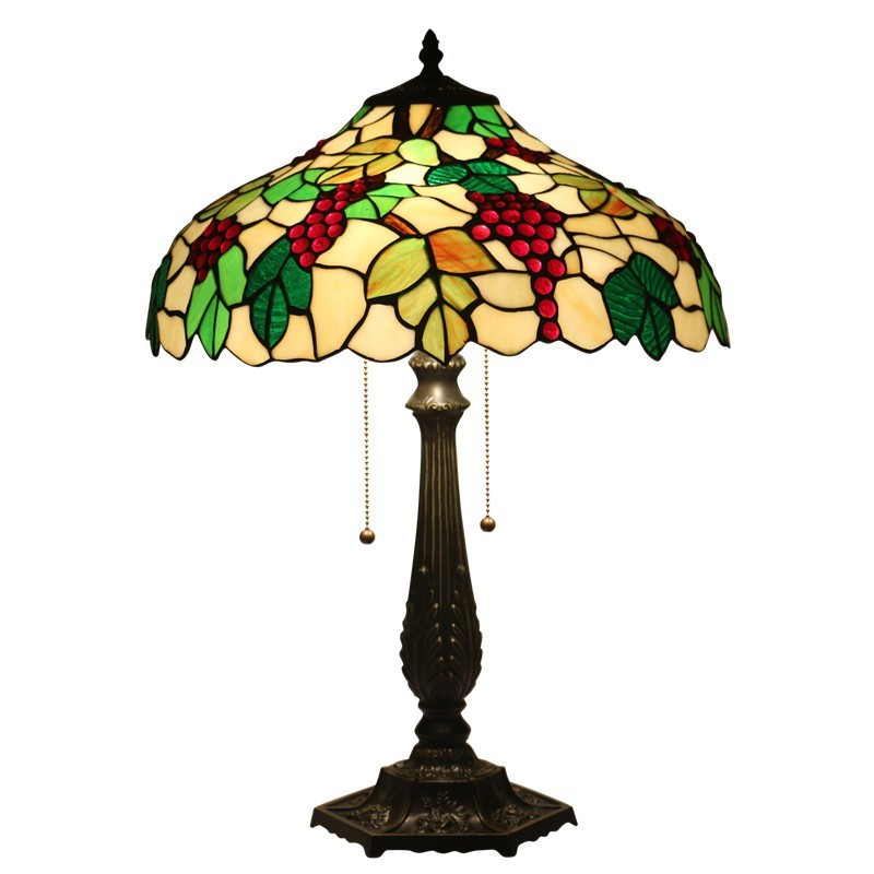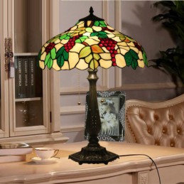 40 cm Eiropas vitrāžas vīnogu stila Tiffany galda lampa