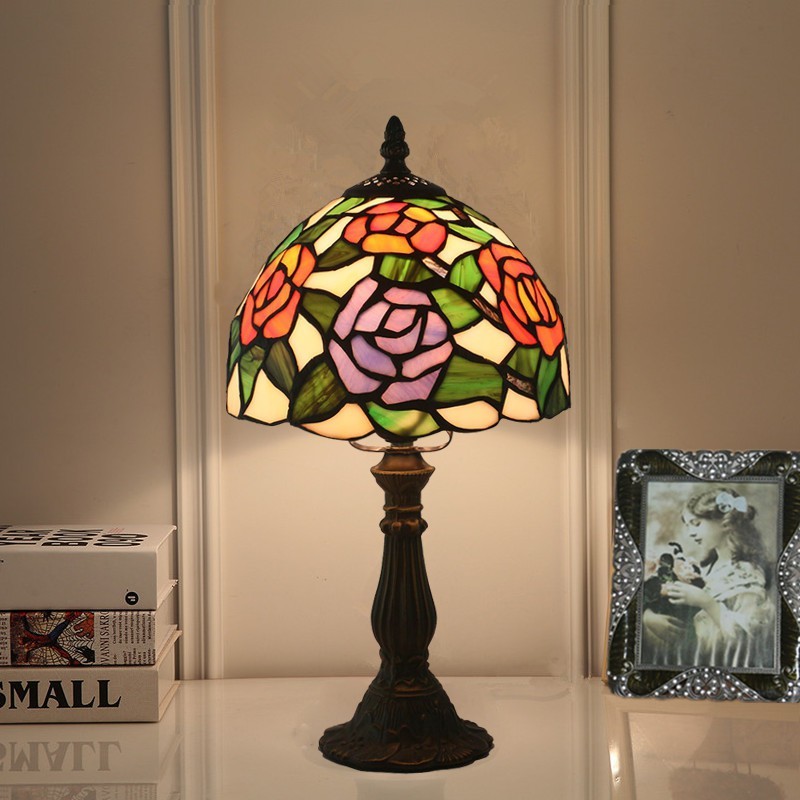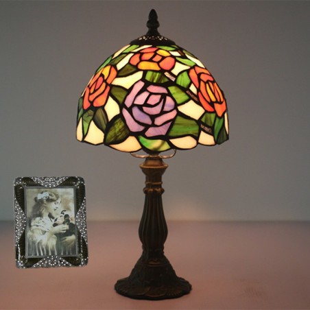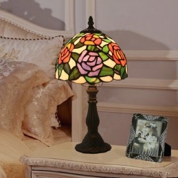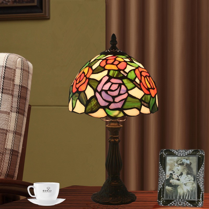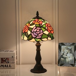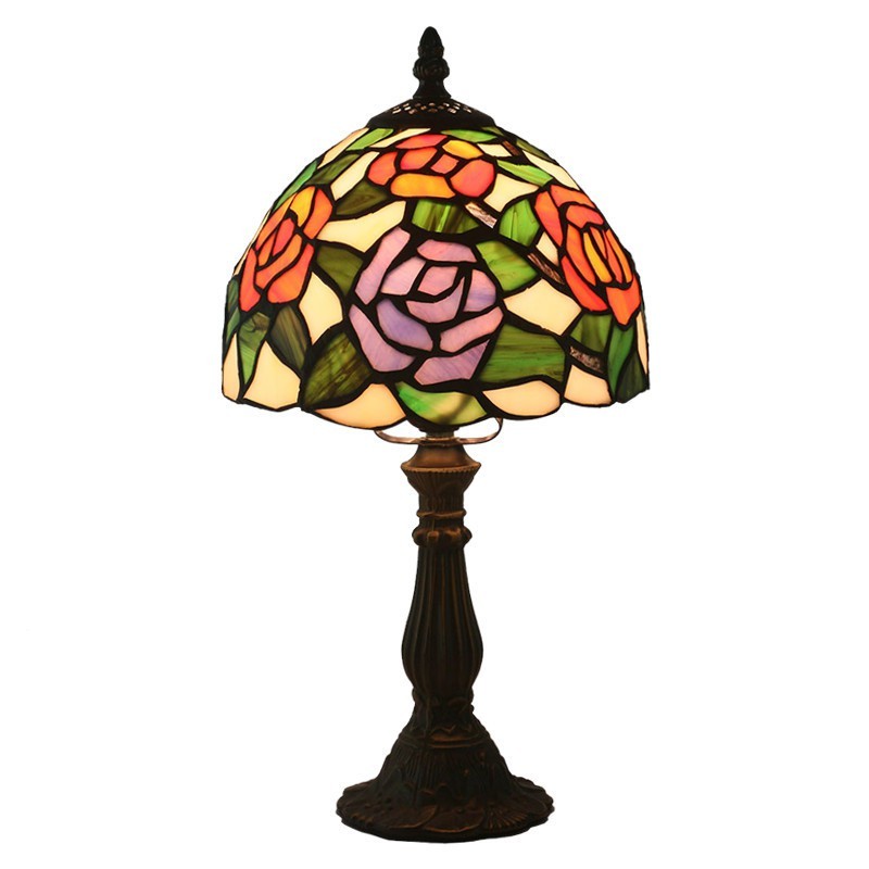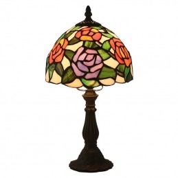 20 cm Eiropas vitrāžas rožu stila Tiffany galda lampa