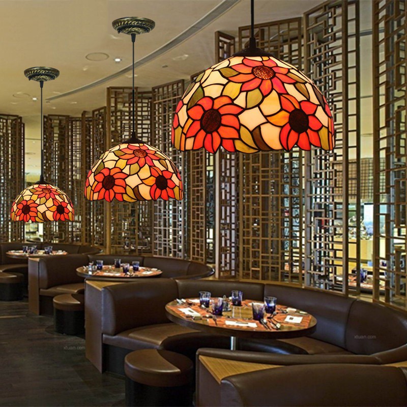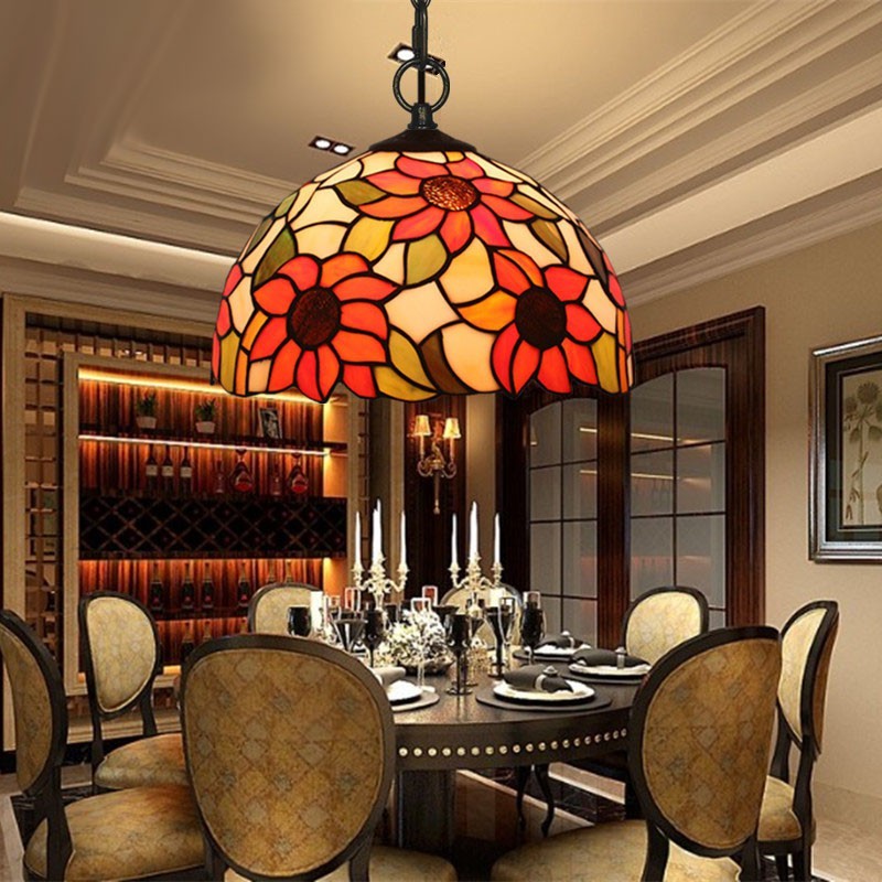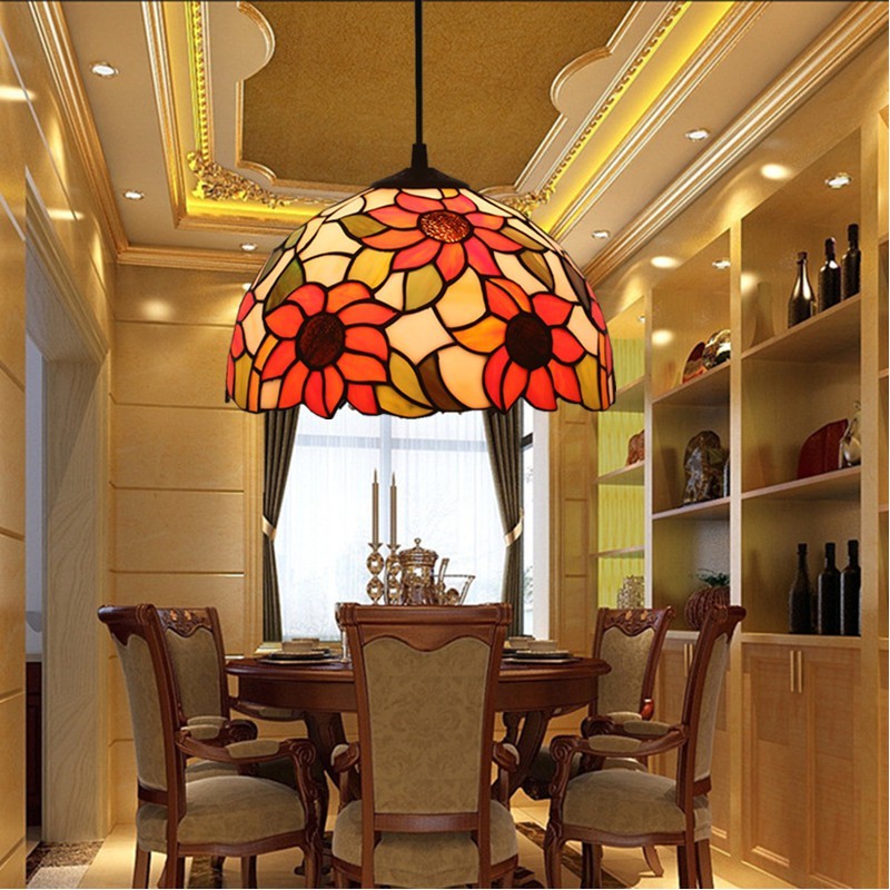 30 cm Eiropas vitrāžas saulespuķu stila Tiffany piekaramā gaisma