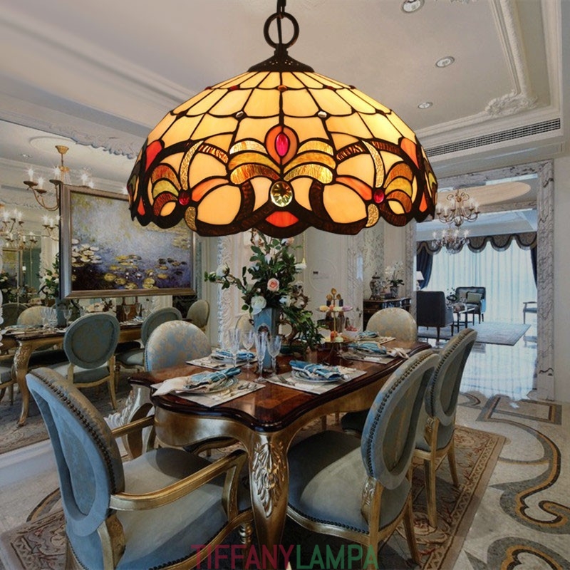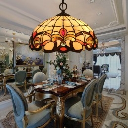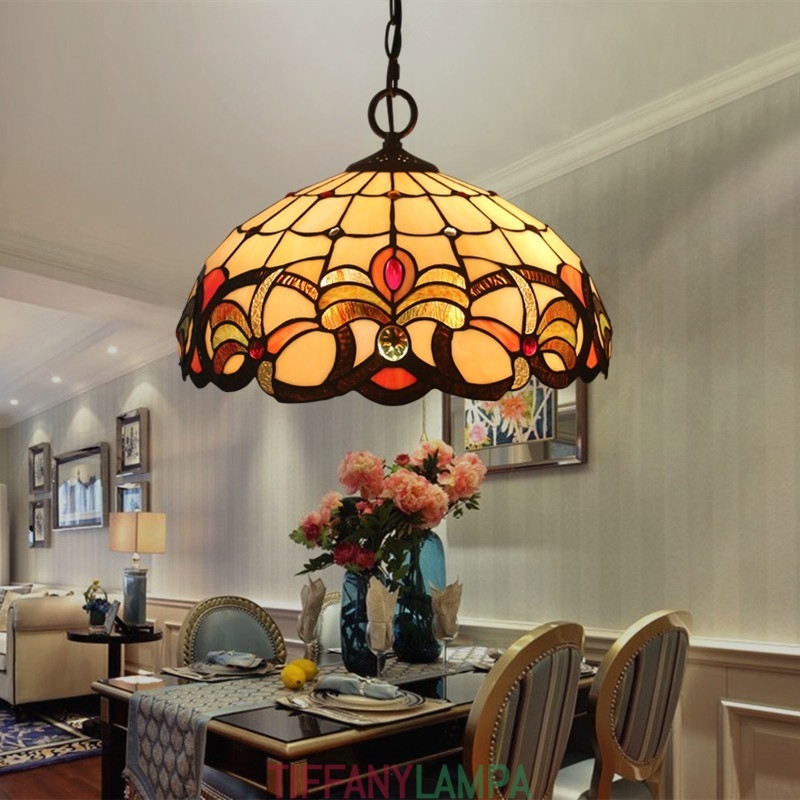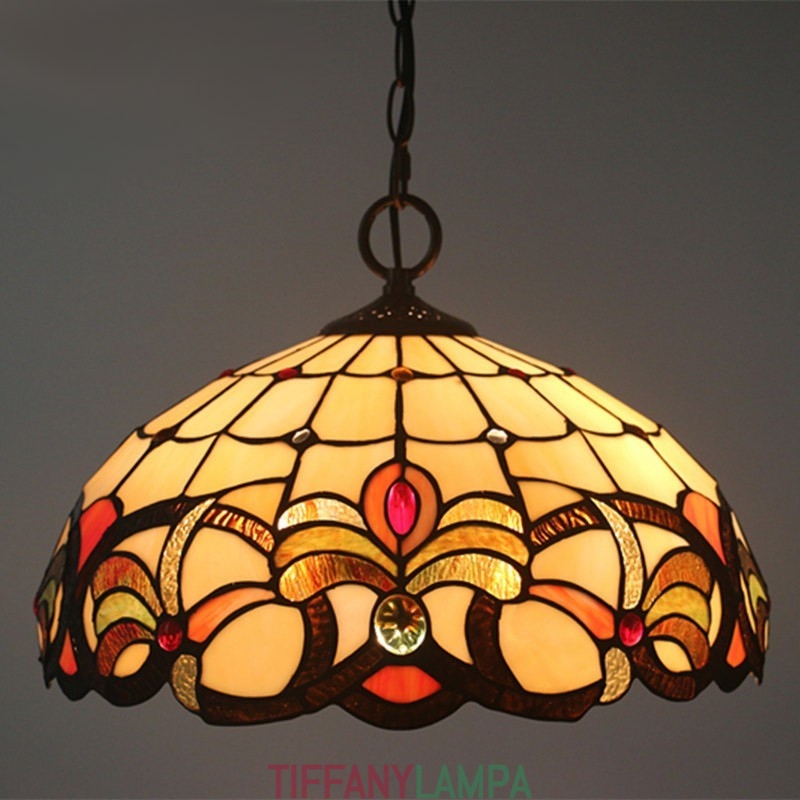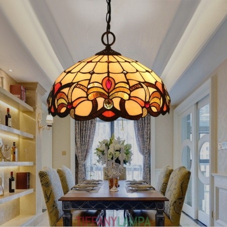 40 cm Eiropas vitrāžas baroka stila Tiffany piekarināmais gaismeklis