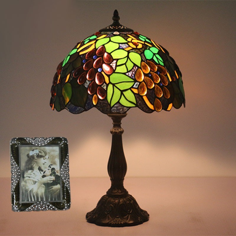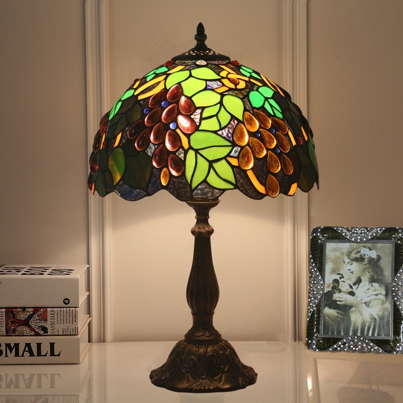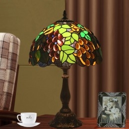 30 cm Eiropas vitrāžas vīnogu stila Tiffany galda lampa
