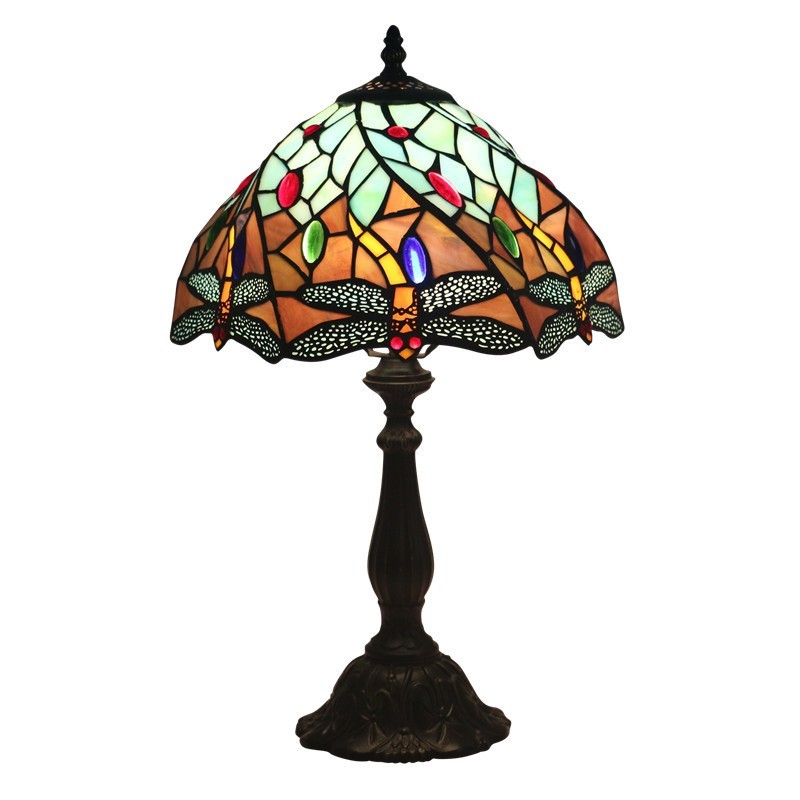 30 cm Eiropas vitrāžas spāres stila Tiffany galda lampa