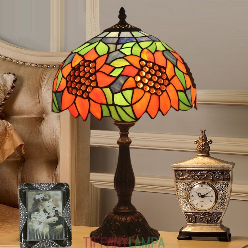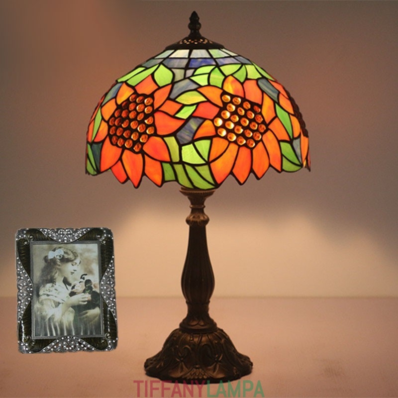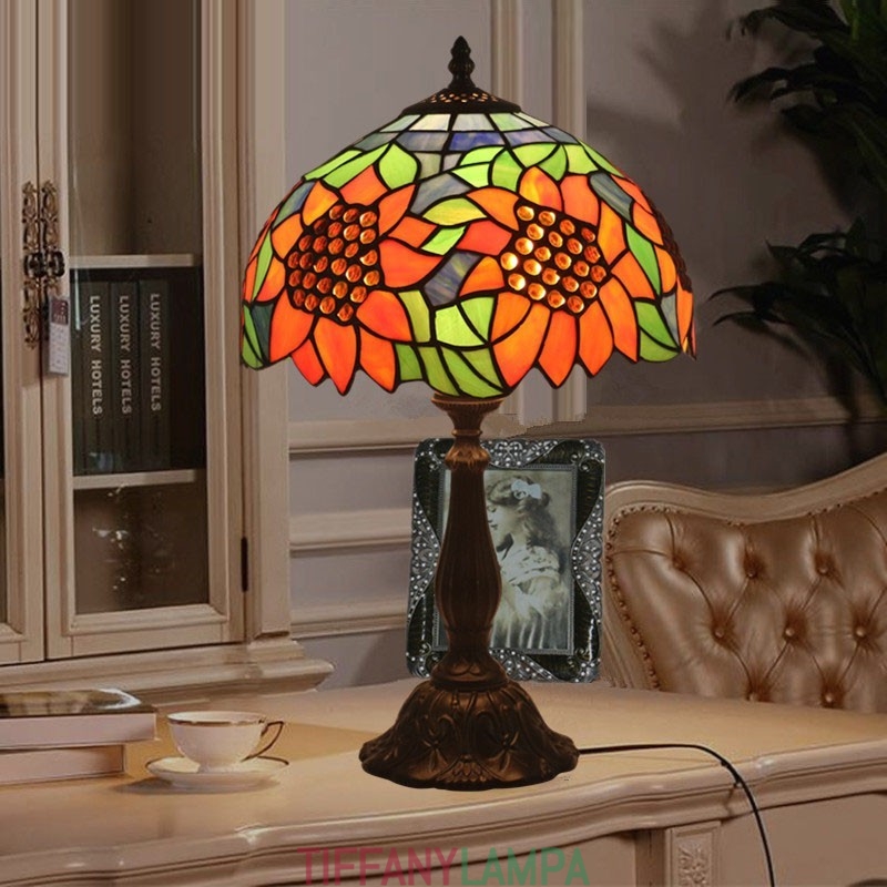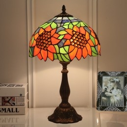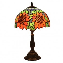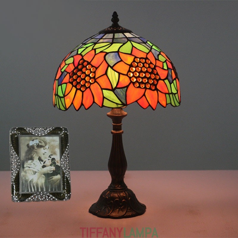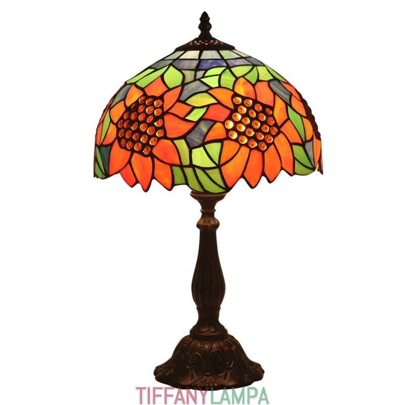 30 cm Eiropas vitrāžas saulespuķu stila Tiffany galda lampa