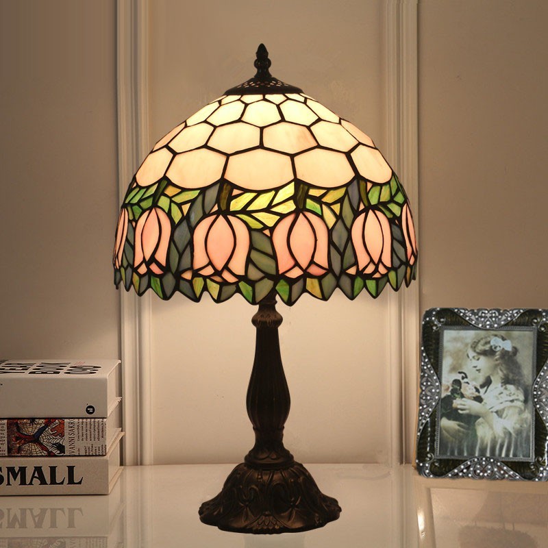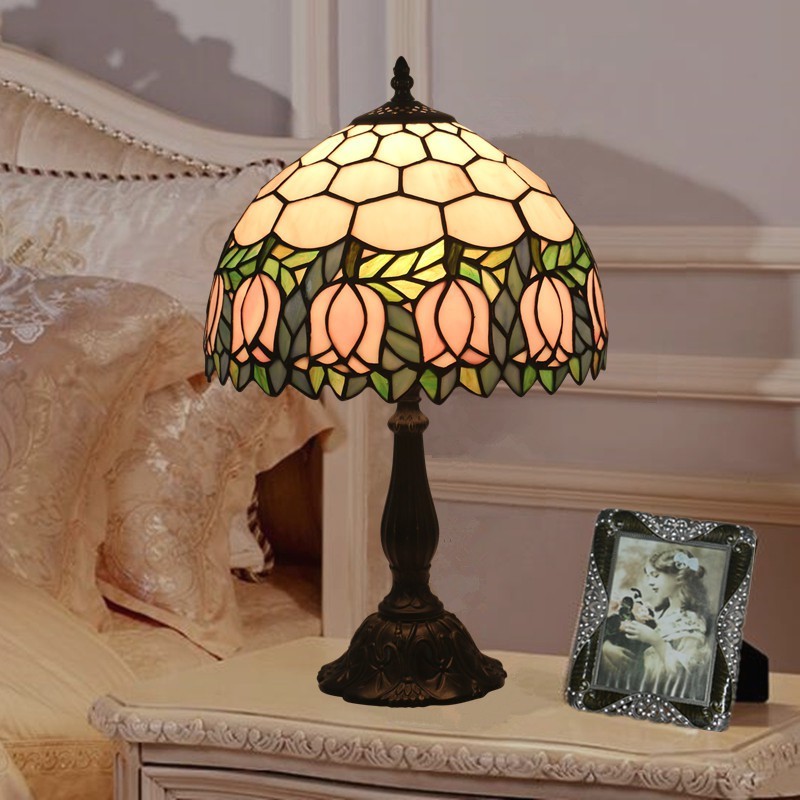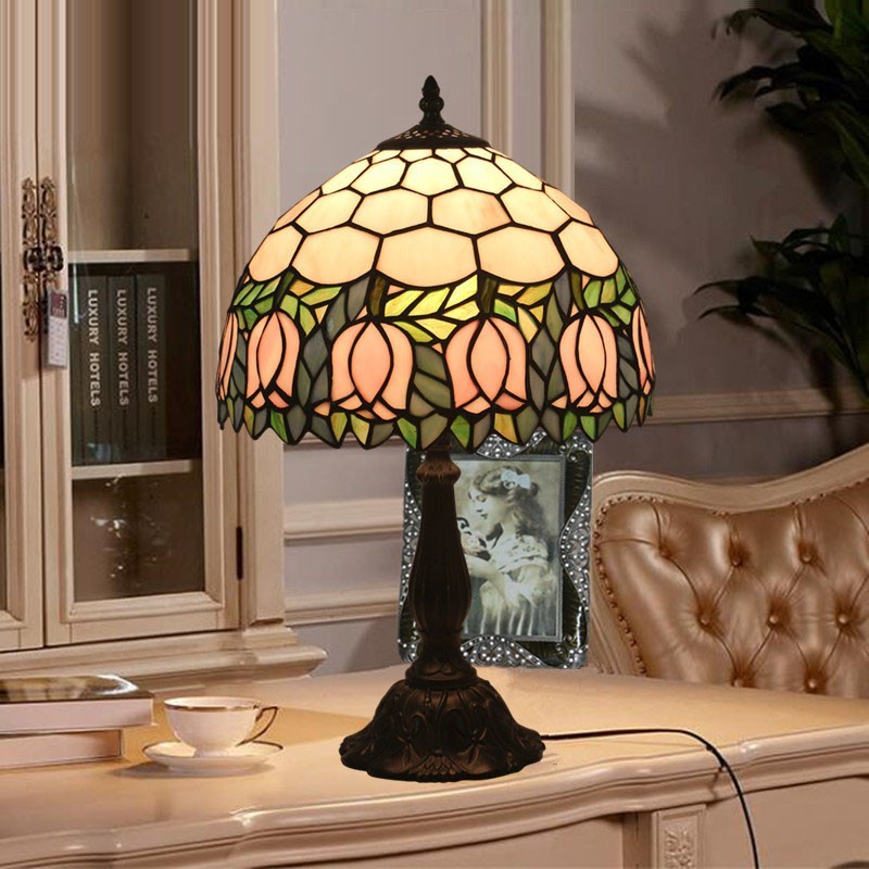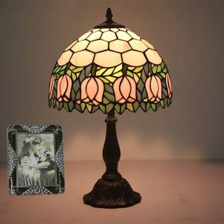30 cm Eiropas vitrāžas tulpju stila Tiffany galda lampa