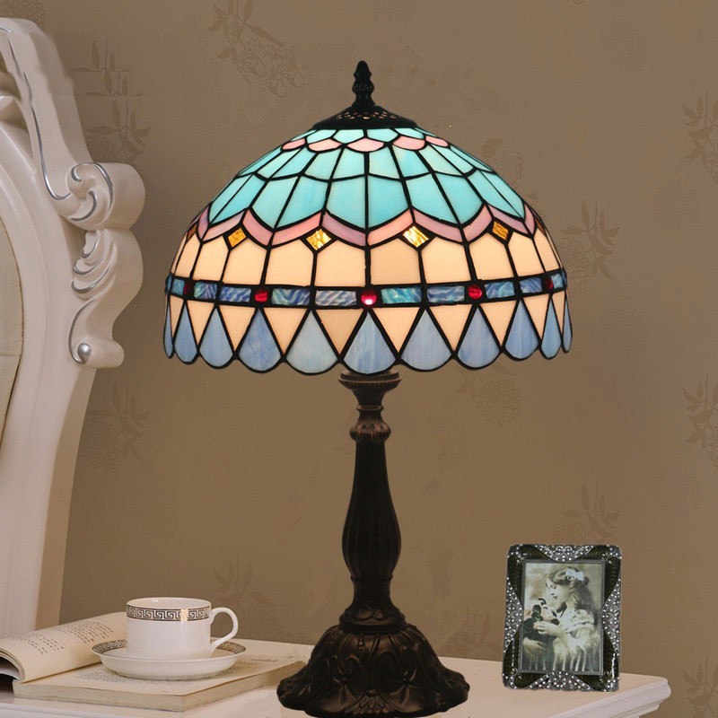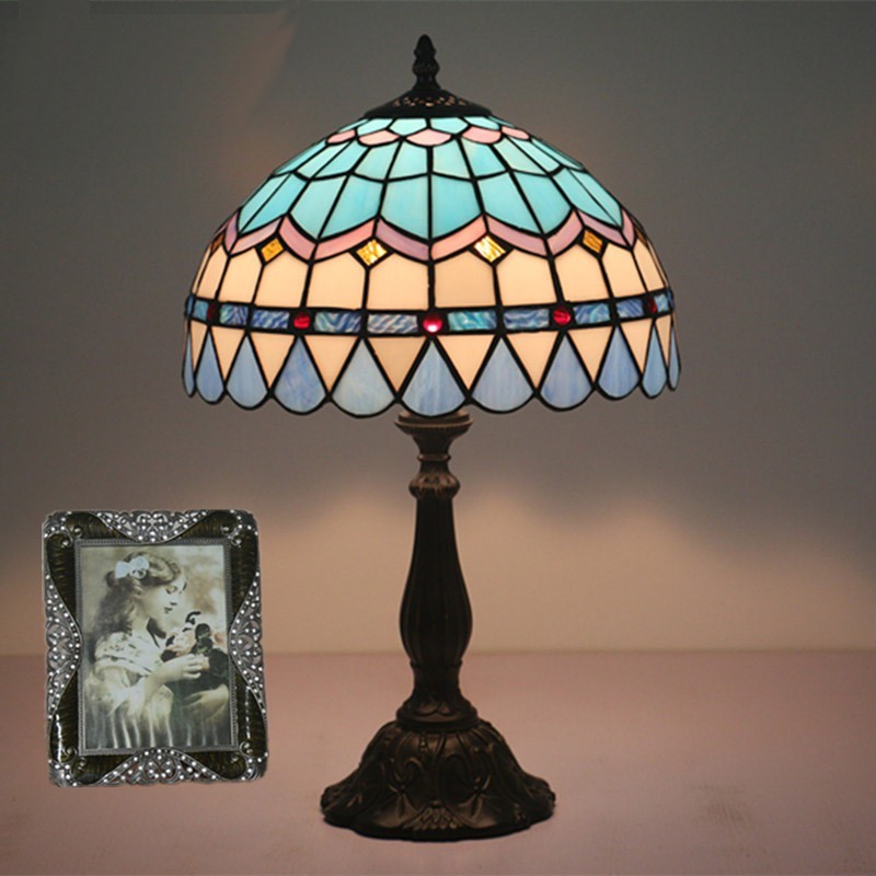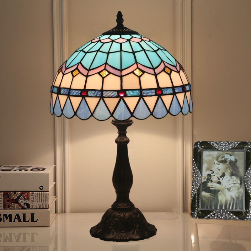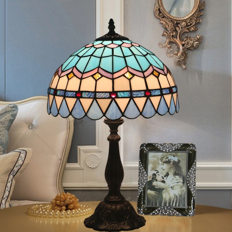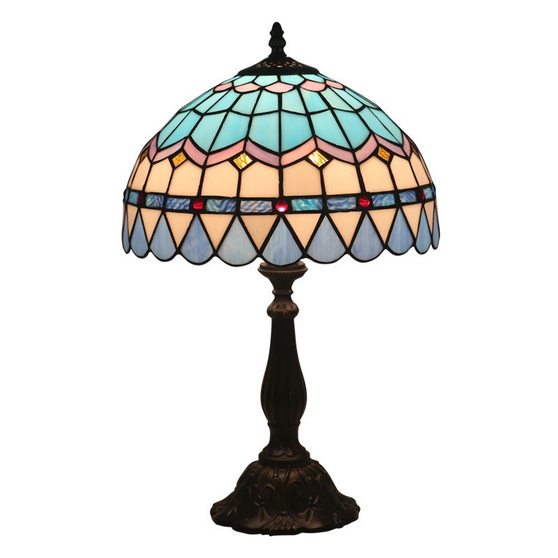 30 cm Eiropas vitrāžas Vidusjūras stila Tiffany galda lampa