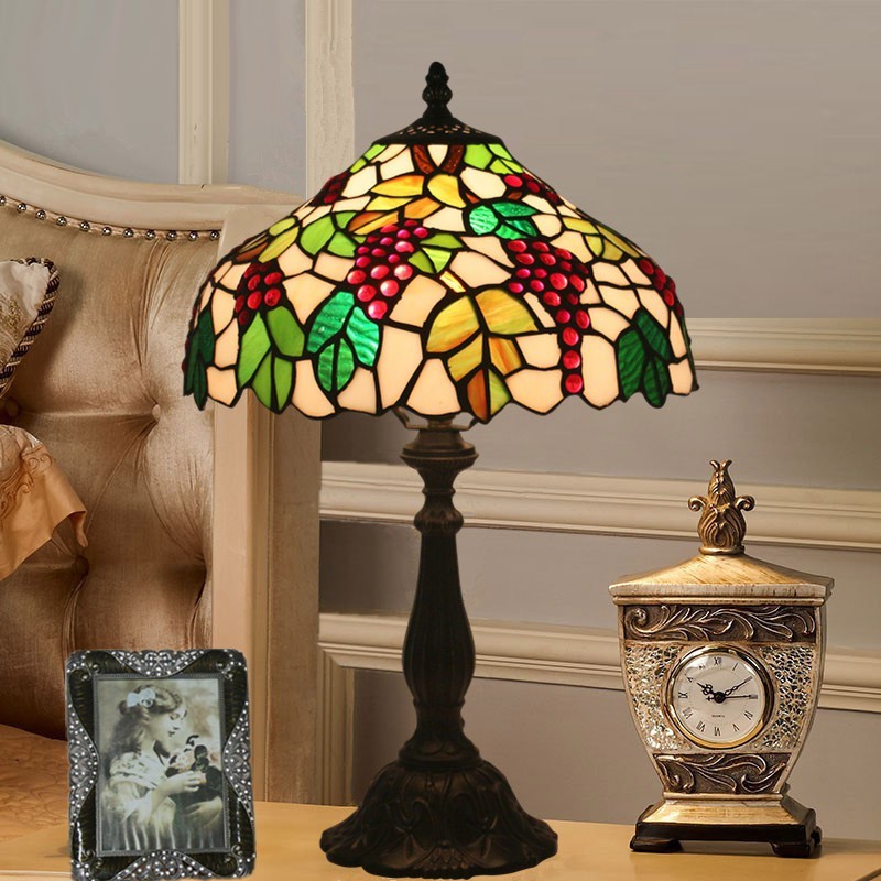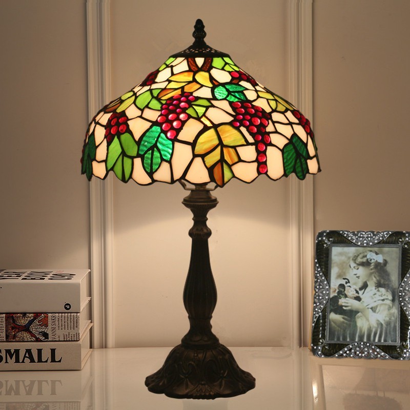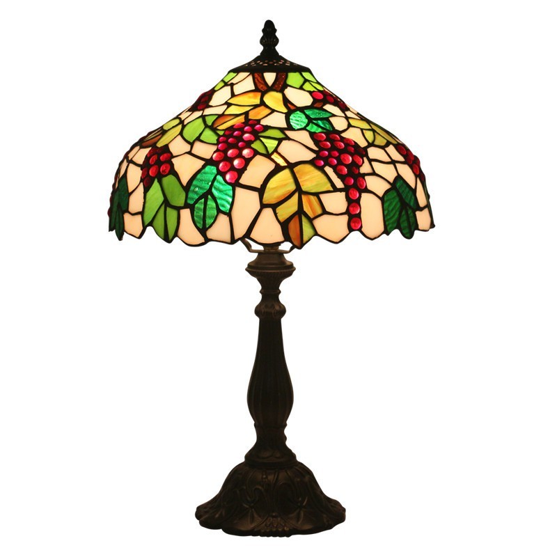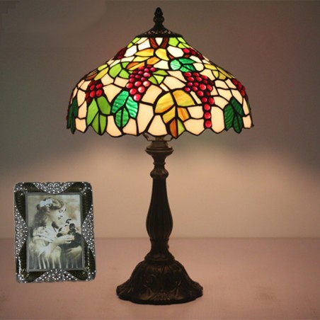 30 cm lauku vitrāžas vīnogu stila Tiffany galda lampa