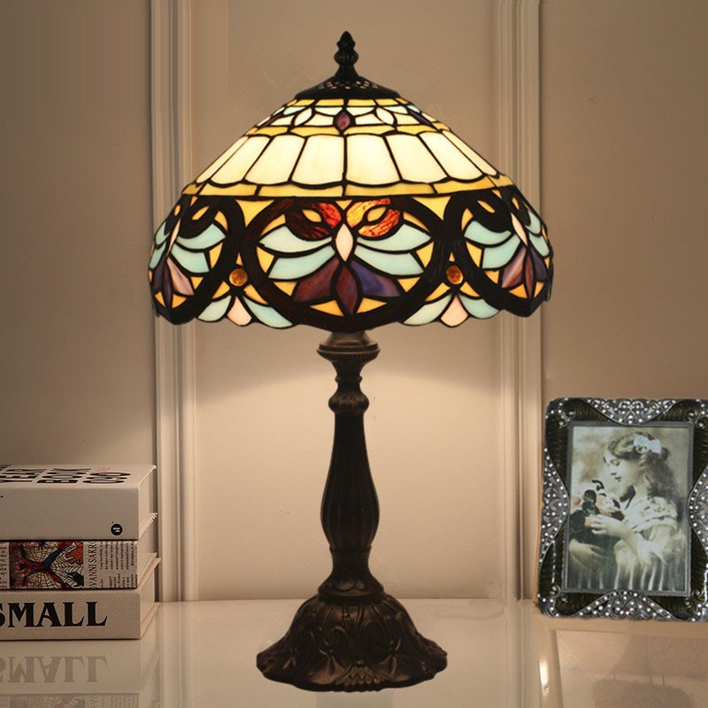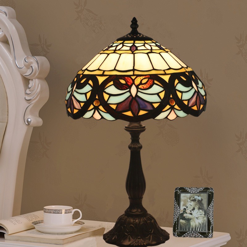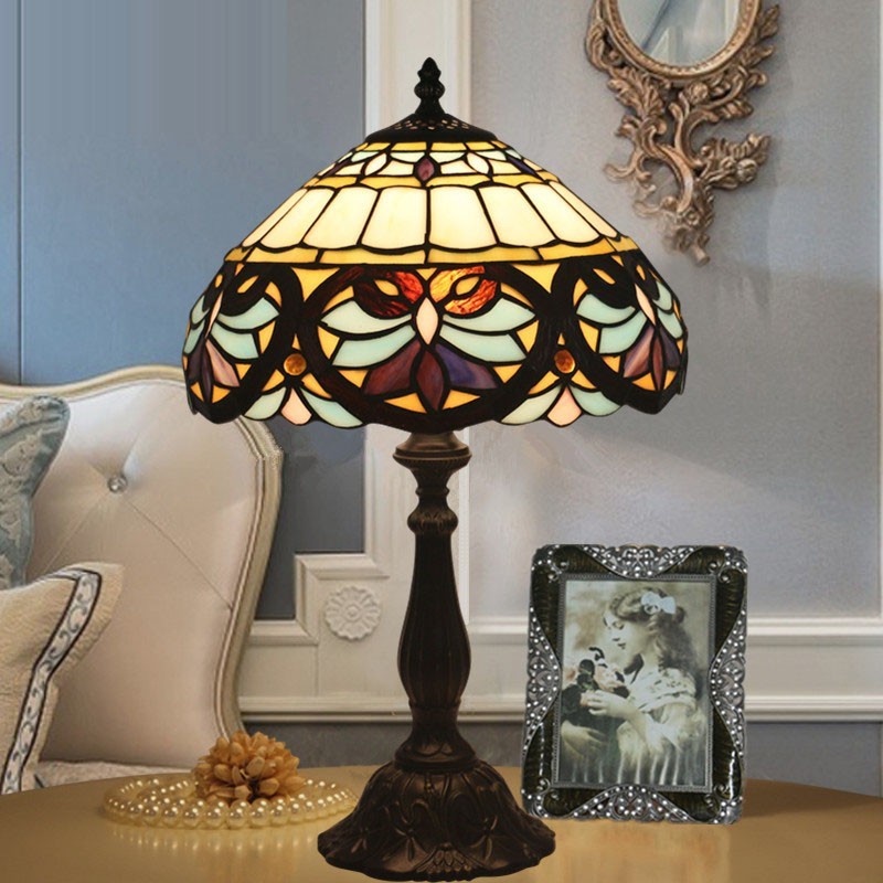 30 cm Eiropas vitrāžas baroka stila Tiffany galda lampa