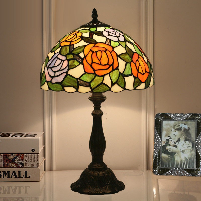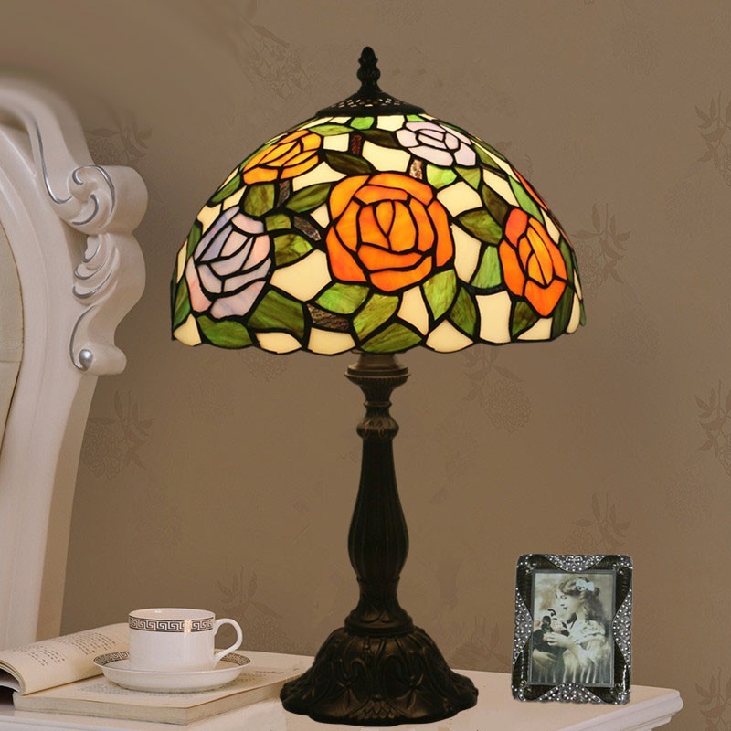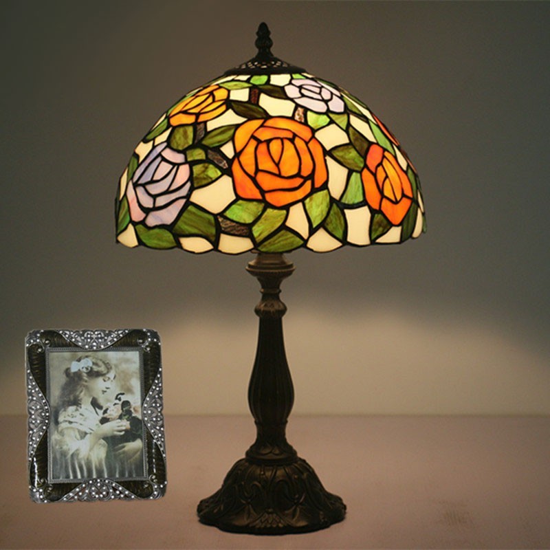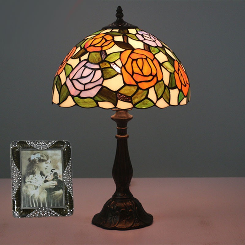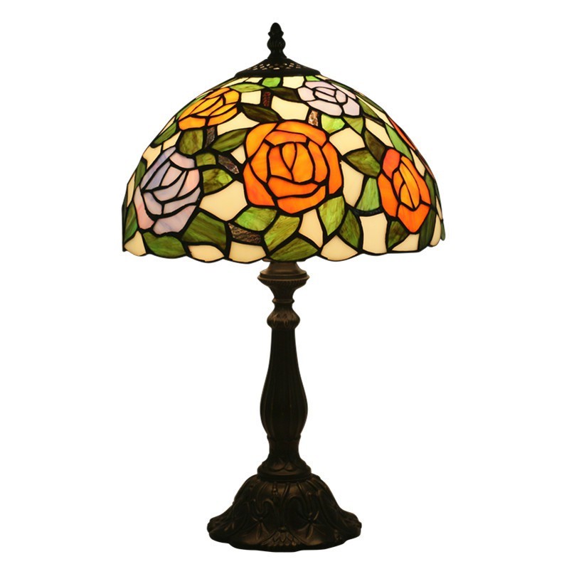 30 cm Eiropas vitrāžas rožu stila Tiffany galda lampa