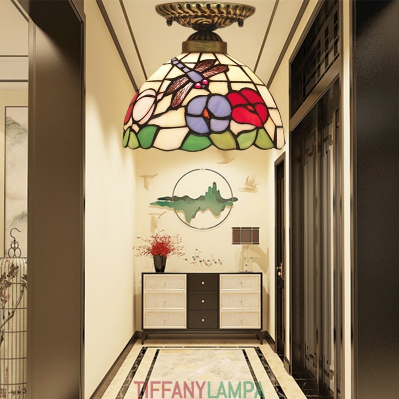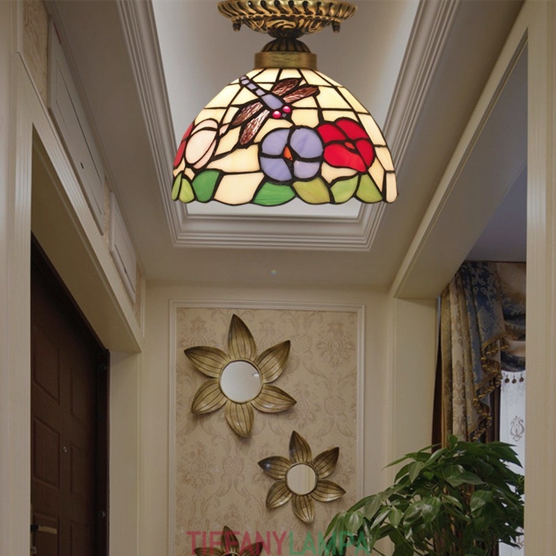 20 cm Eiropas vitrāžas Dragonfly Style Tiffany Flush Mount
