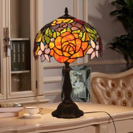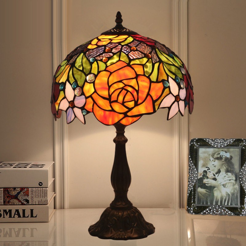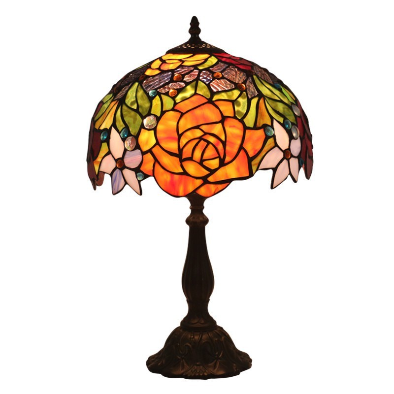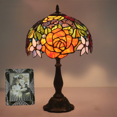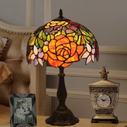30 cm Eiropas vitrāžas rožu stila Tiffany galda lampa