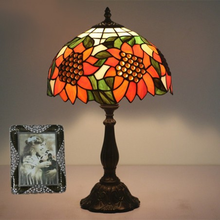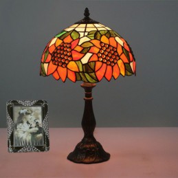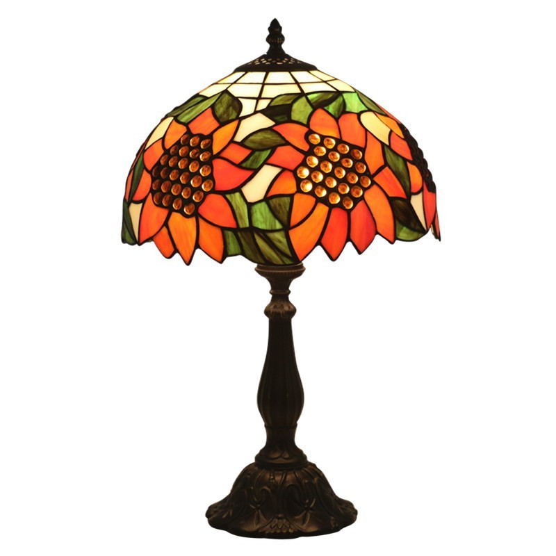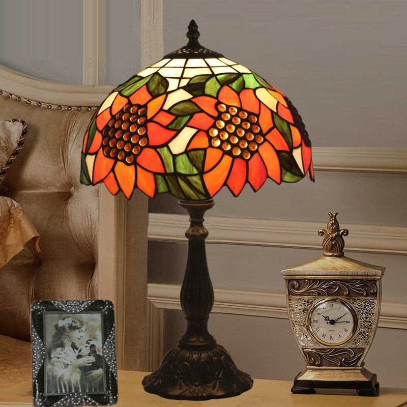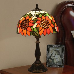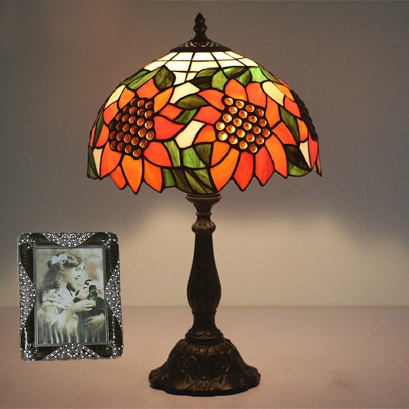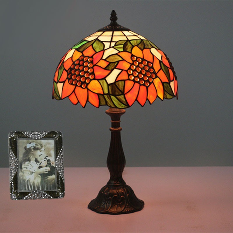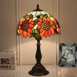 30 cm Eiropas vitrāžas saulespuķu stila Tiffany galda lampa